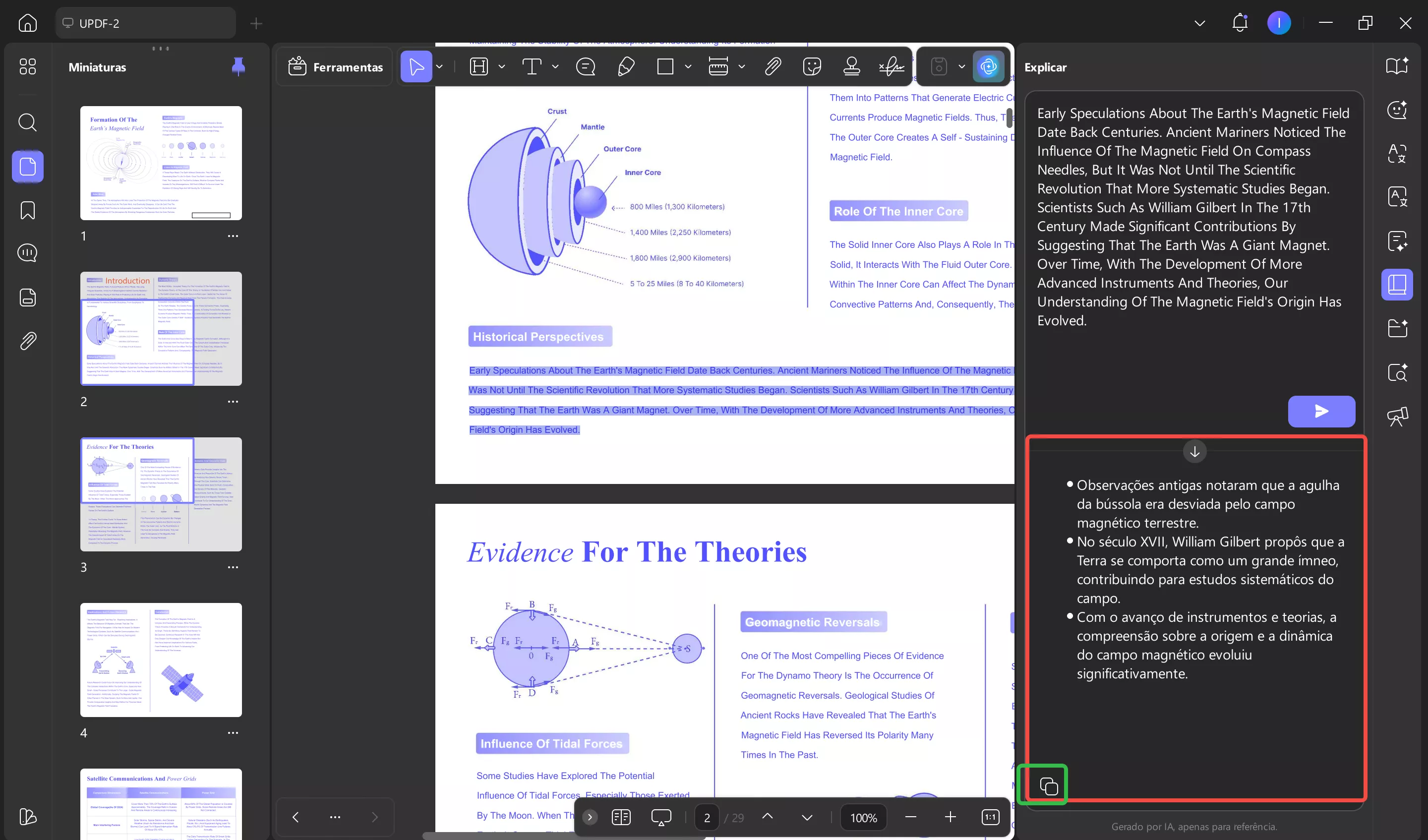Passo 2. Assim que o UPDF AI fornecer a explicação, copie o texto para suas anotações ou documentos. Se necessário, você pode gerar novamente a resposta ou avaliar a explicação para ajudar a melhorar os resultados.
