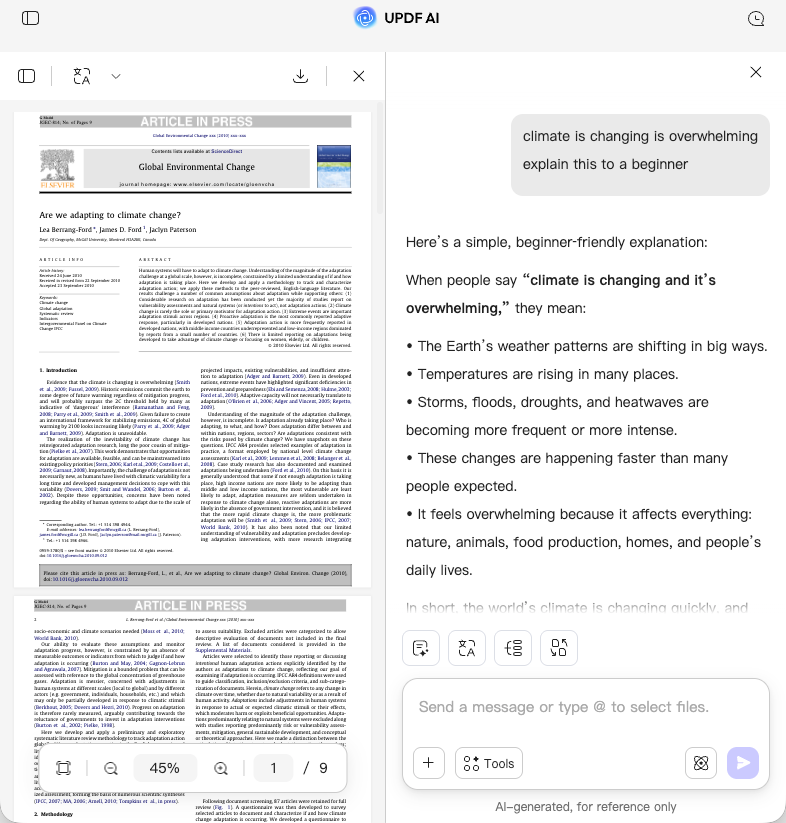 Not a statistics major? No problem. Reading through experimental designs, data models, and empirical testing can be overwhelming for beginners. UPDF AI simplifies these rigorous methodologies into clear, logical steps. Understand how the research was conducted and why it matters, without needing an advanced degree in the subject.