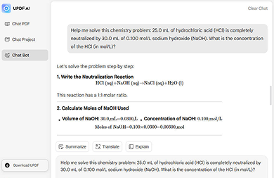 UPDF AI helps explain chemical reactions, balance equations, and break down complex chemistry concepts into simple steps.