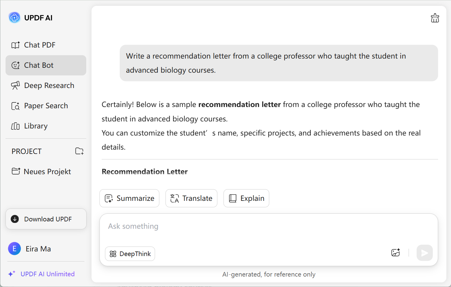 UPDF AI better understands specific contexts (academic, job, scholarship) and adjusts tone & examples accordingly, unlike generic AIs which often produce one-size-fits-all drafts.