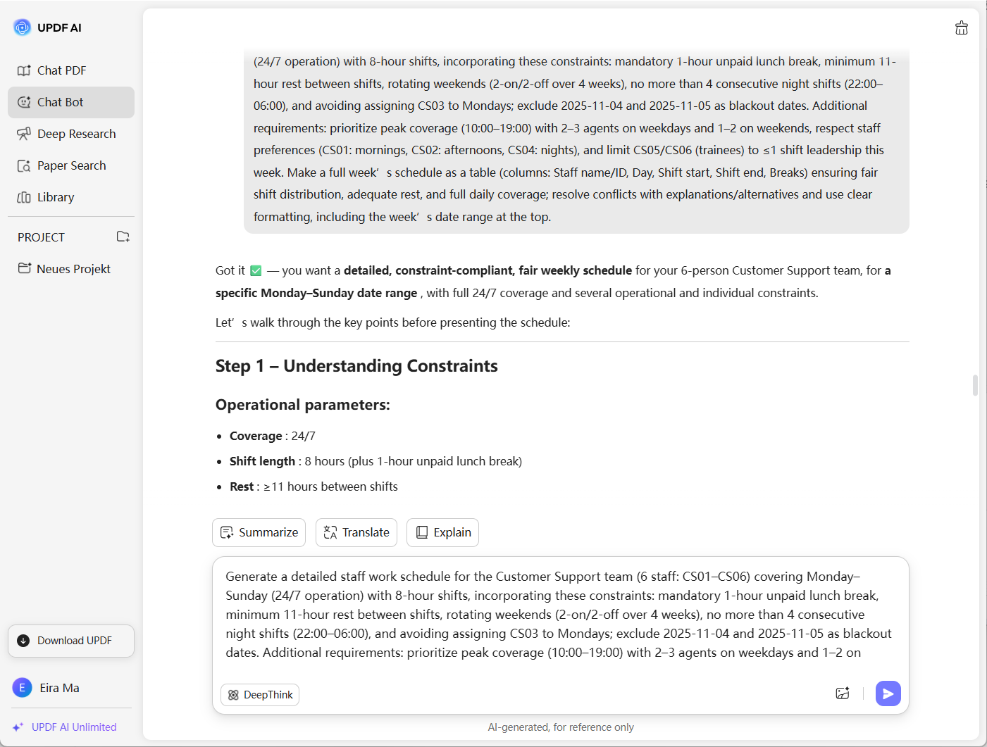 Efficient scheduling ensures the right people are in the right place at the right time. UPDF AI Schedule Generator for Employees helps employees assign shifts intelligently—reducing downtime, avoiding overlaps, and improving overall team performance. The result is smoother operations and a happier, more productive workforce.