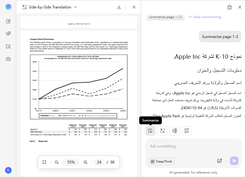 تحليل البيانات المالية بأي لغة، حيث يوفر UPDF AI رؤى دقيقة عبر المستندات الدولية. مثالي للفرق العالمية والتحليل المالي عبر الحدود.