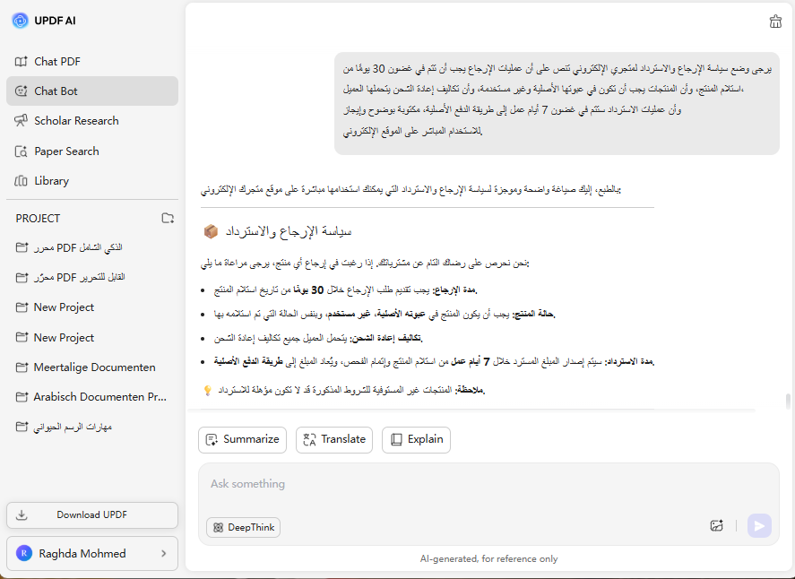 يمكن للفرق التي تدير منتجات أو حملات متعددة استخدام UPDF AI لتسهيل إنشاء سياسات متسقة ومتوافقة عبر مختلف المنصات، مما يضمن الكفاءة ويقلل من الأخطاء.