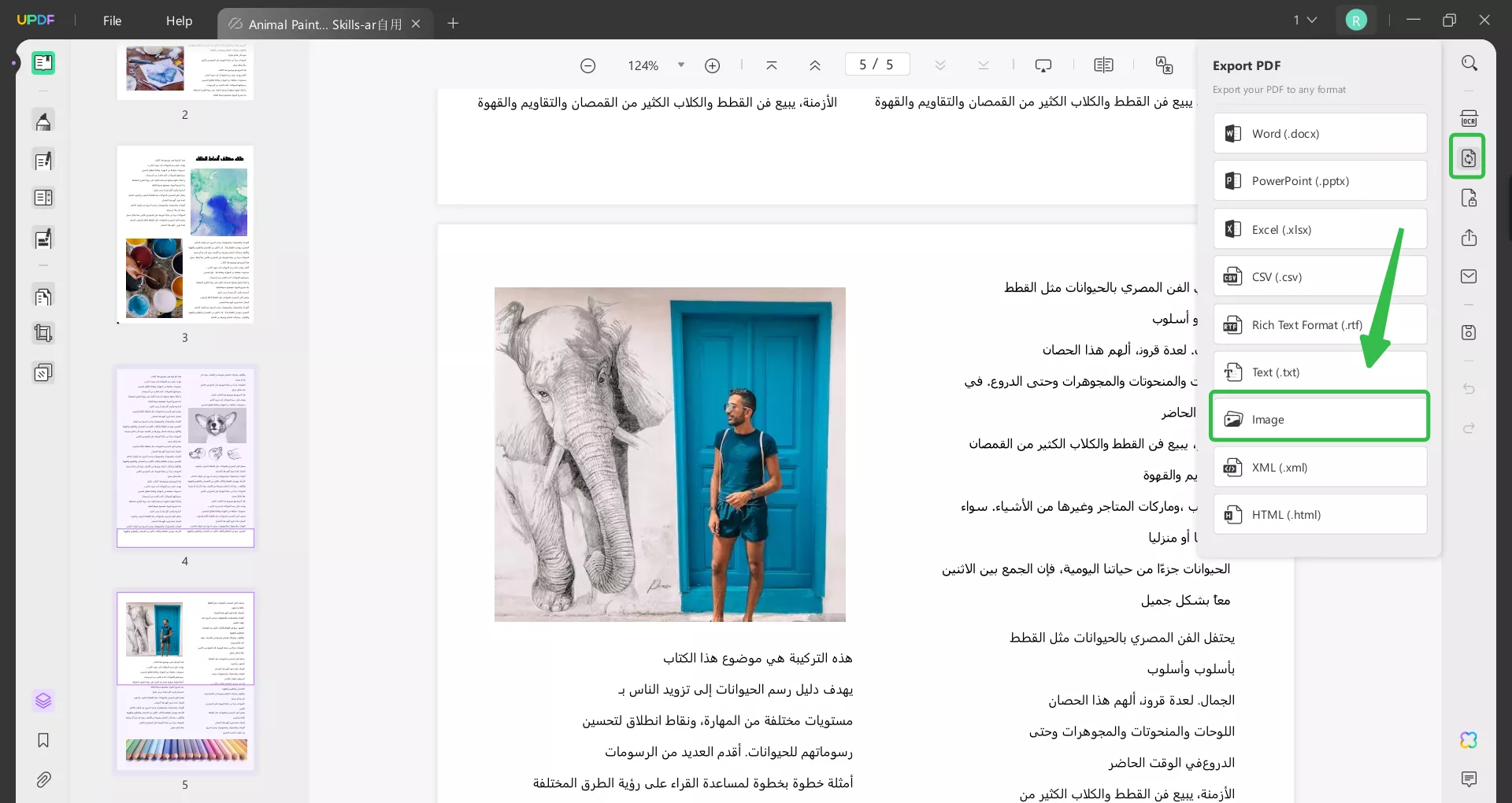- استخدم أداة تحويل PDF مثل UPDF لتحويل ملف PDF المُصدَّر إلى صورة أو صور متعددة.