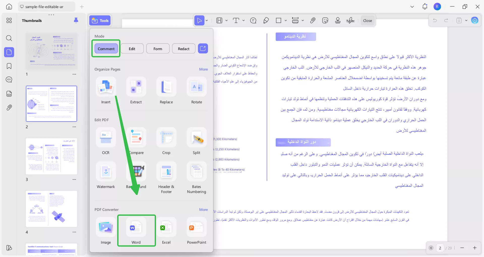 استخدام UPDF AI مباشرةً لتحويل ملفات PDF إلى Word عبر