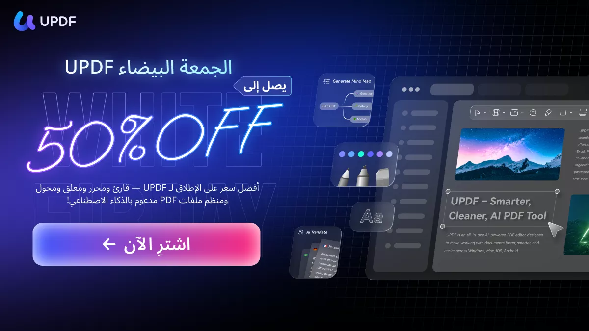 صفقة الجمعة البيضاء على UPDF موجودة بالفعل!  أسرع، احصل على التطبيق على أجهزة Mac الخاصة بك قبل فوات الأوان.