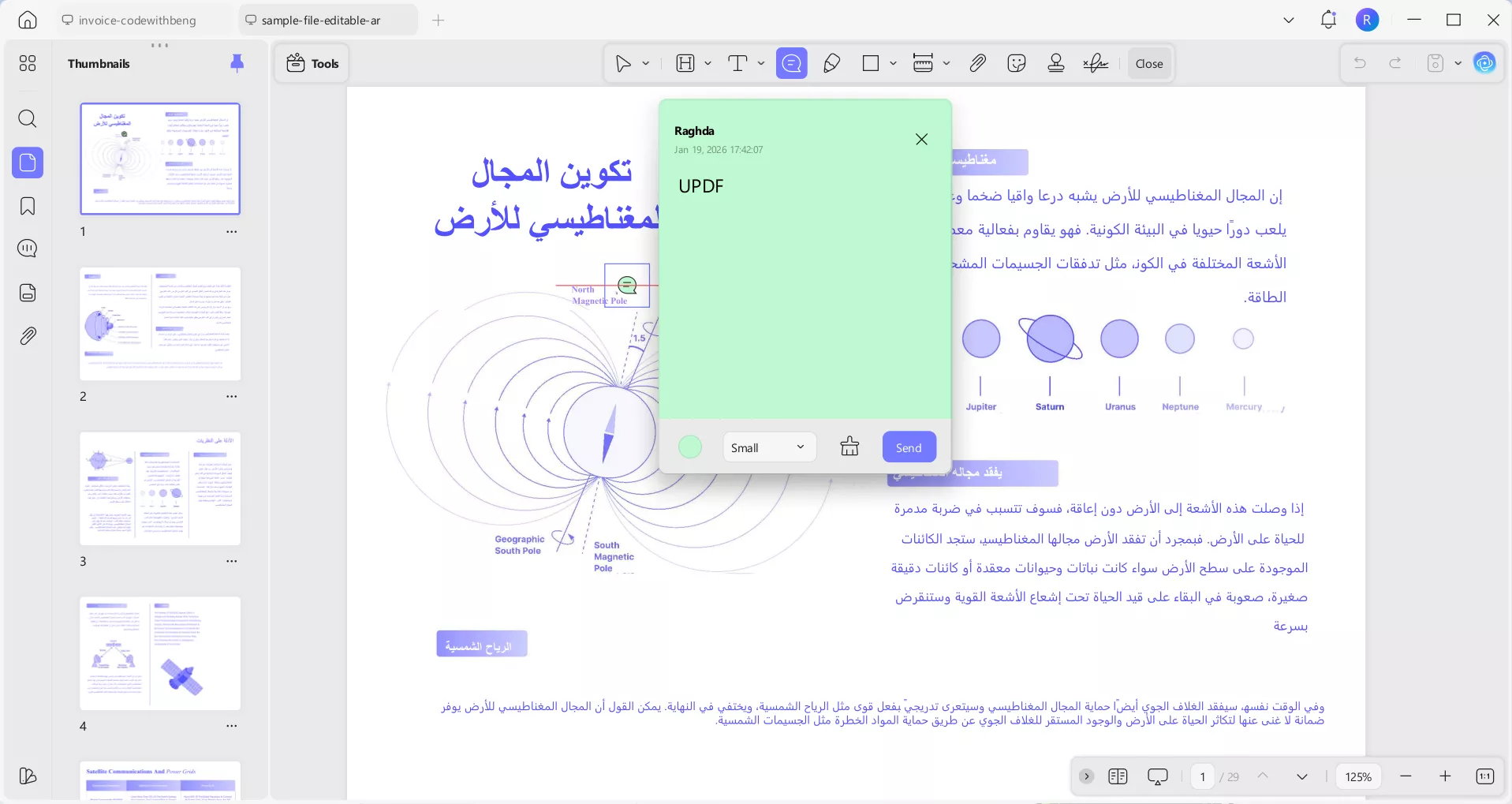 أما بالنسبة لتدوين الملاحظات، فيمكنك استخدام ميزات التعليق على ملفات PDF في UPDF، والتي توفر لك أدوات متعددة مثل التحديد بالألوان، الملصقات، التعليقات، الرسم بالقلم، وأكثر من ذلك.