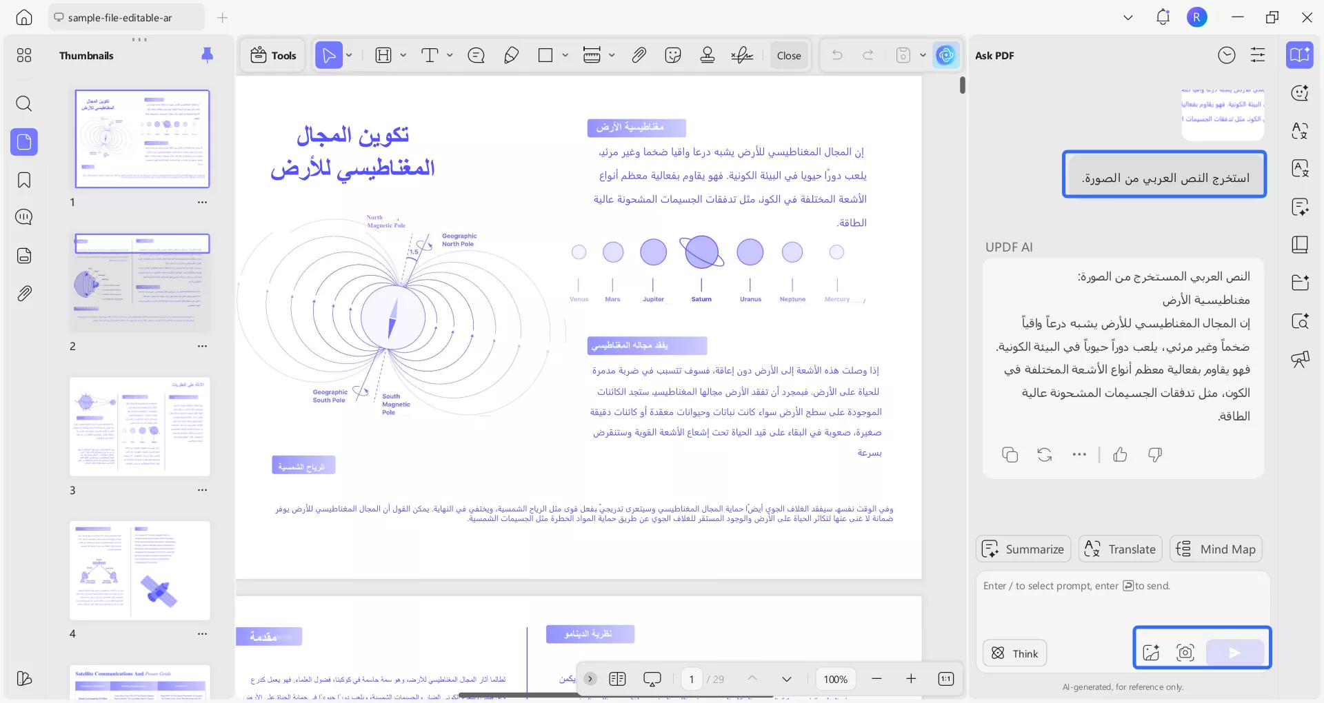 الجزء 1: كيفية تحويل الصورة إلى نص باللغة العربية باستخدام UPDF AI عبر الإنترنت