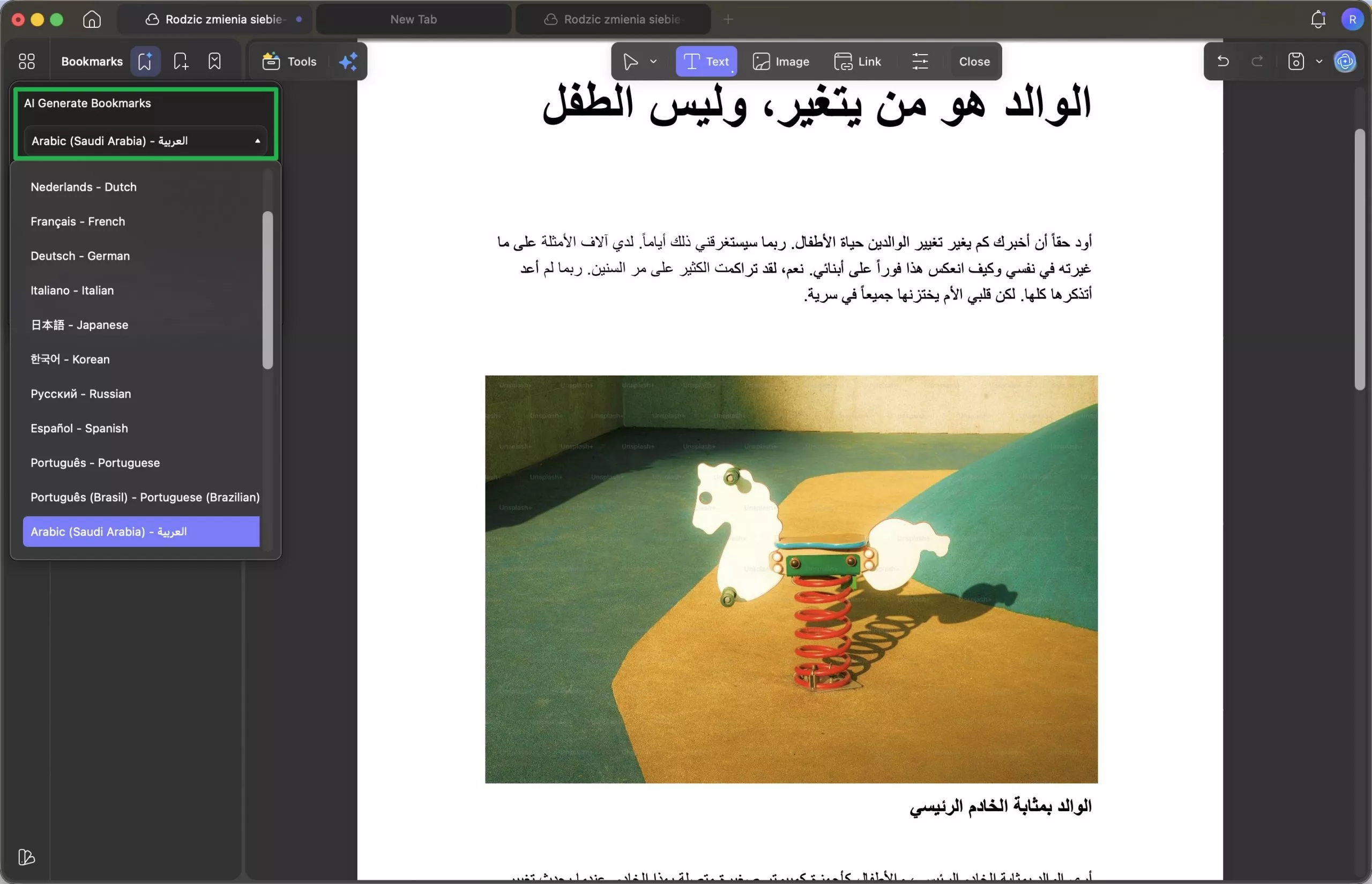 1. دعم اللغة والترجمة: يدعم UPDF 26 لغة ويسمح بترجمة عناوين الإشارات المرجعية إلى لغة أخرى على الفور. يساعد هذا في تبديل لغات المستند بسرعة ويجعل التنقل أسهل عند مشاركة الملفات مع زملاء دوليين.