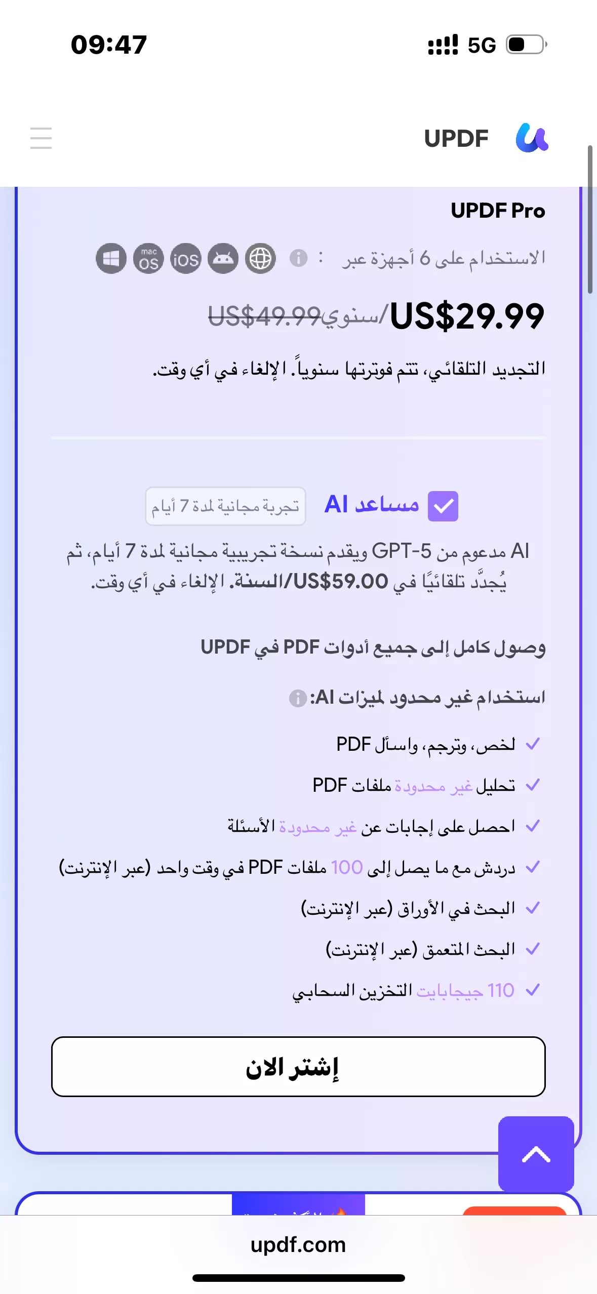 إذا كنت ترغب في الترقية من الإصدار المجاني، يمكنك النظر في شراء UPDF. بعد الترقية، يمكنك استخدام UPDF على جميع الأنظمة بسهولة.
