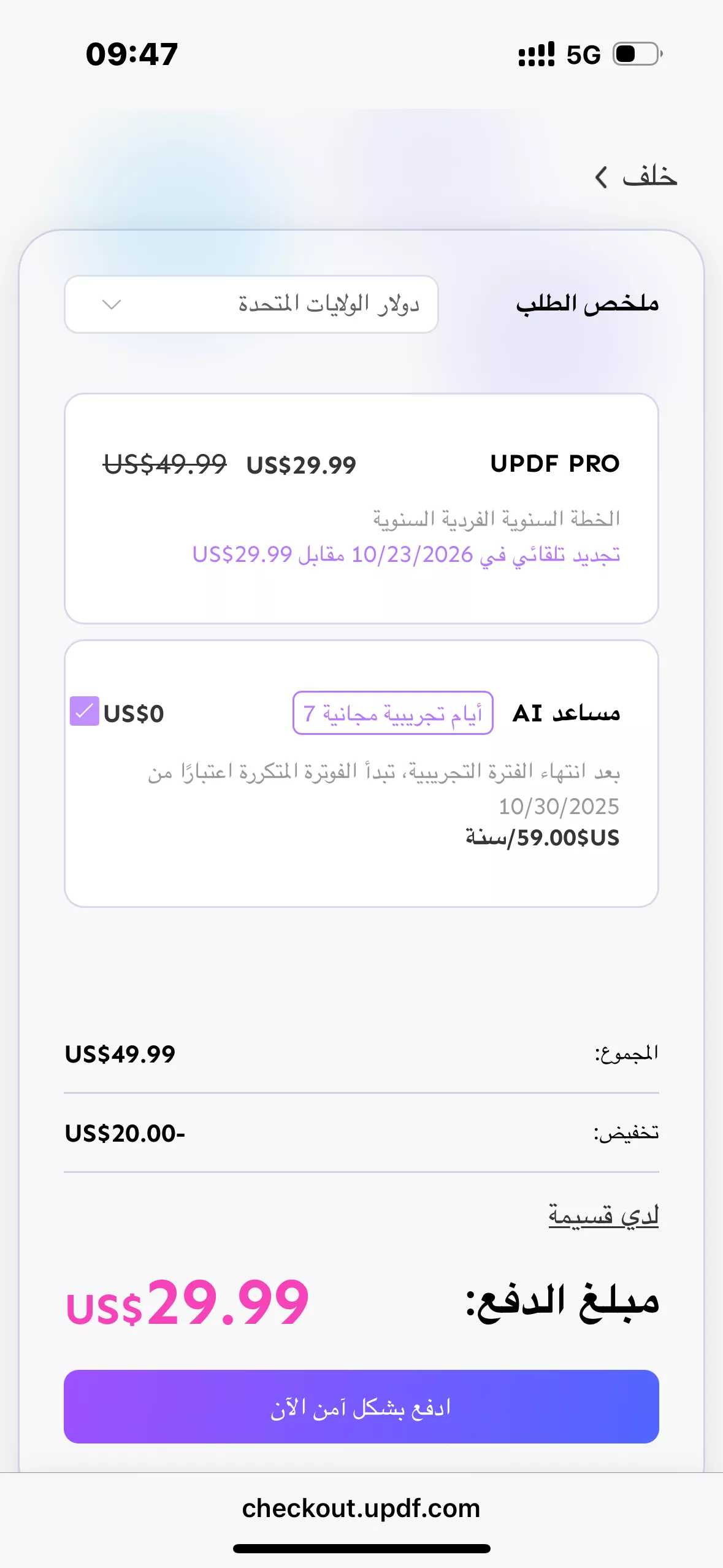 ملاحظة مهمة: بعد الشراء، يمكنك استخدام حسابك المميز لتشغيل UPDF على أنظمة Windows وMac وiOS وAndroid.