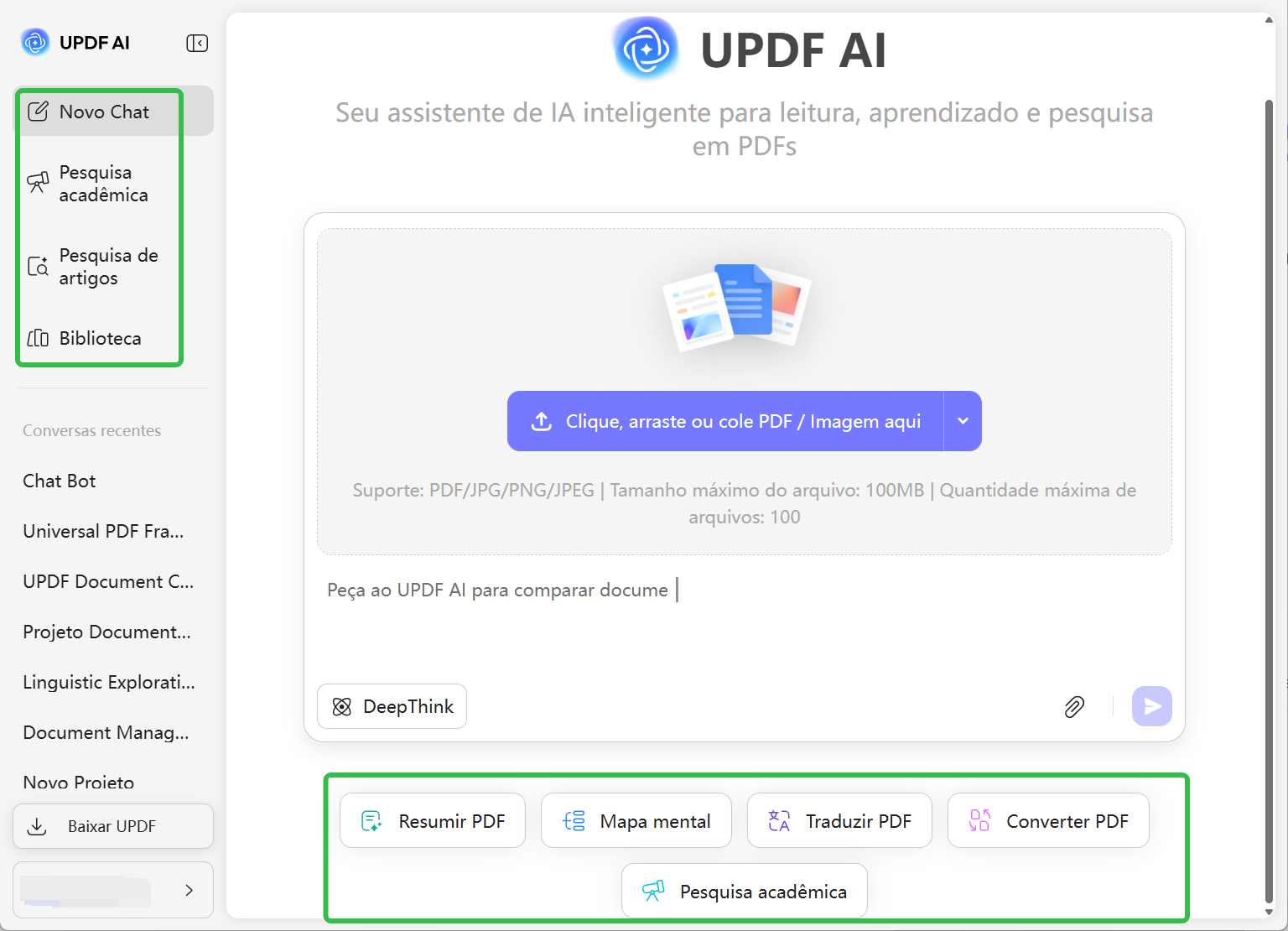 Perfeito para quem lida com contratos, propostas ou documentos técnicos. O UPDF AI fornece insights precisos, navegação rápida por seções e compreensão inteligente de PDF, muito além das ferramentas básicas de chat.
