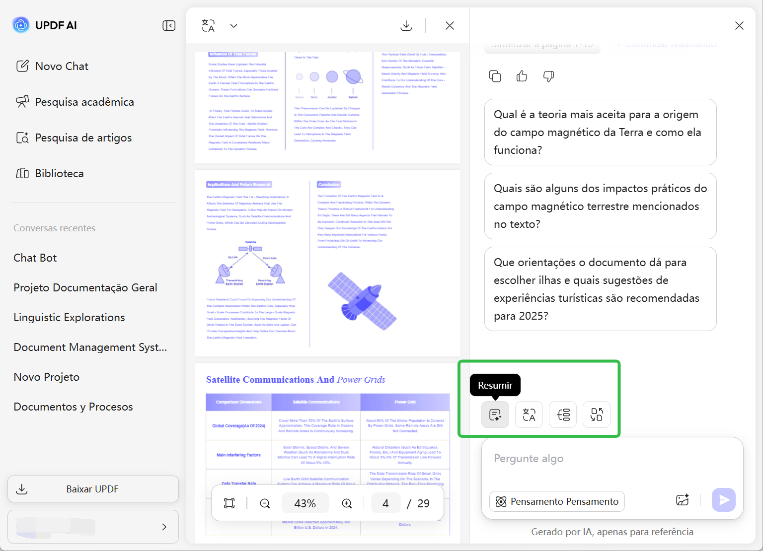 Quando os documentos são longos demais para digerir, o UPDF AI ajuda você a extrair pontos-chave, resumir capítulos e até criar mapas mentais para uma compreensão mais rápida.