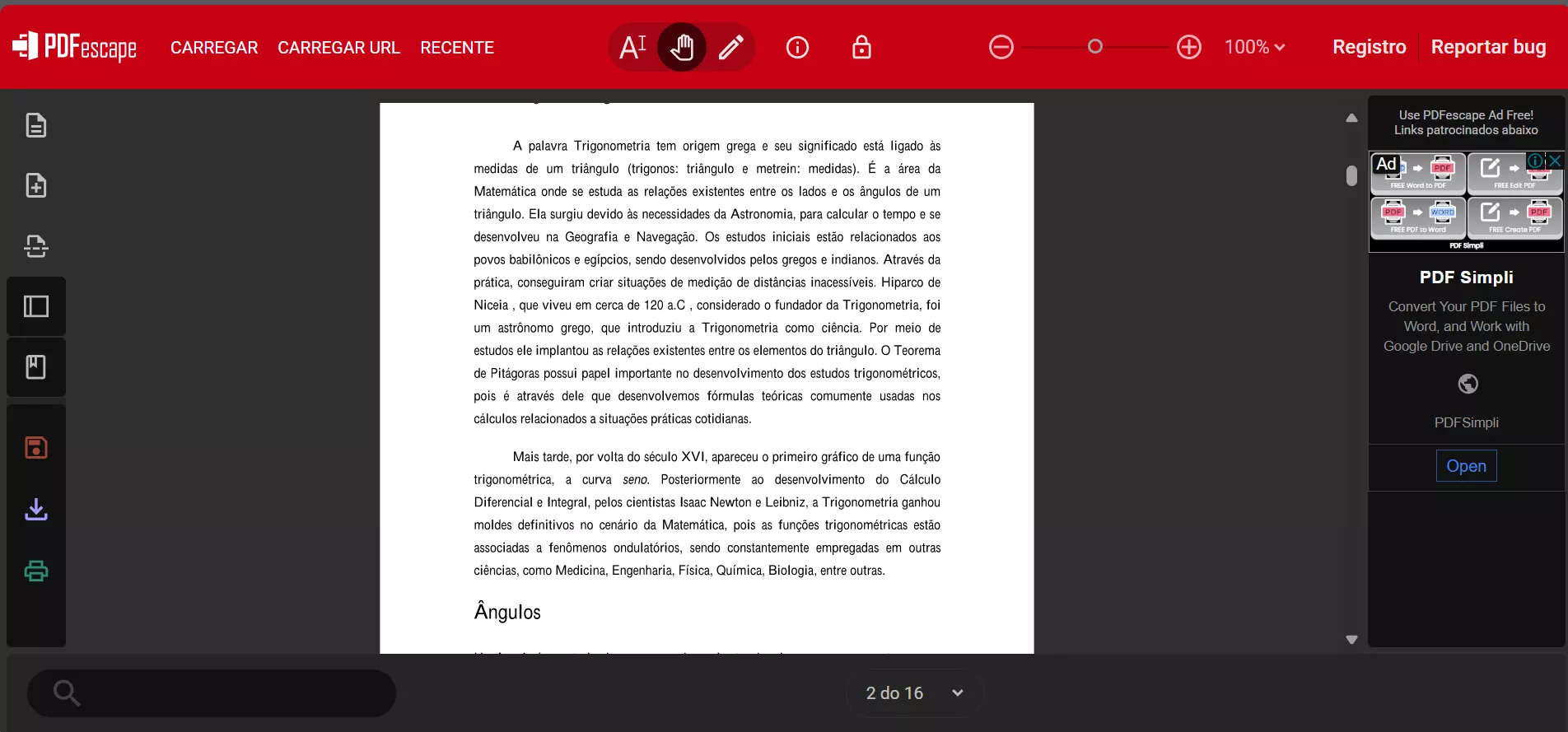 Instruções: Acesse o site do PDFescape e clique no botão Carregar PDF para PDFescape para fazer upload do PDF que deseja editar. Em seguida, escolha a ferramenta lápis e selecione o texto a ser editado. Se você quiser adicionar um novo texto, clique no ícone de texto na parte superior e clique na área em branco para adicionar texto.
