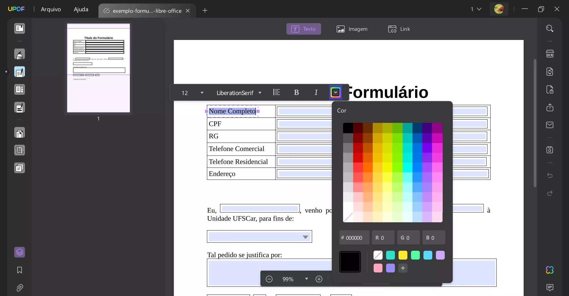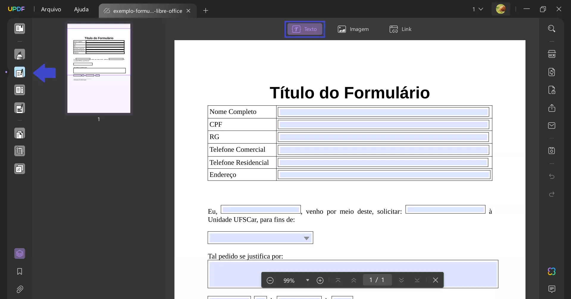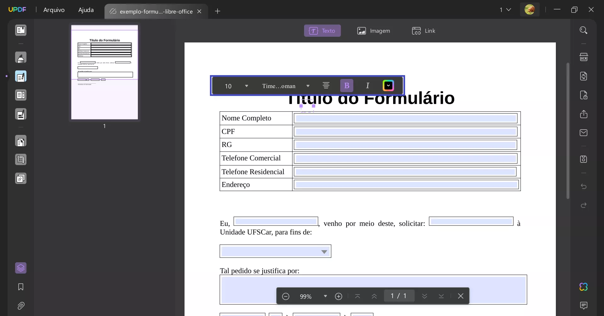 - Ao editar um formulário PDF com ele, você não pode modificar as propriedades de campos de formulário individuais. Por exemplo, você não pode usar verificação ortográfica, definir alinhamento, adicionar interações ou utilizar ferramentas de cálculo para o formulário. Por outro lado, o UPDF oferece suporte total a esses recursos.