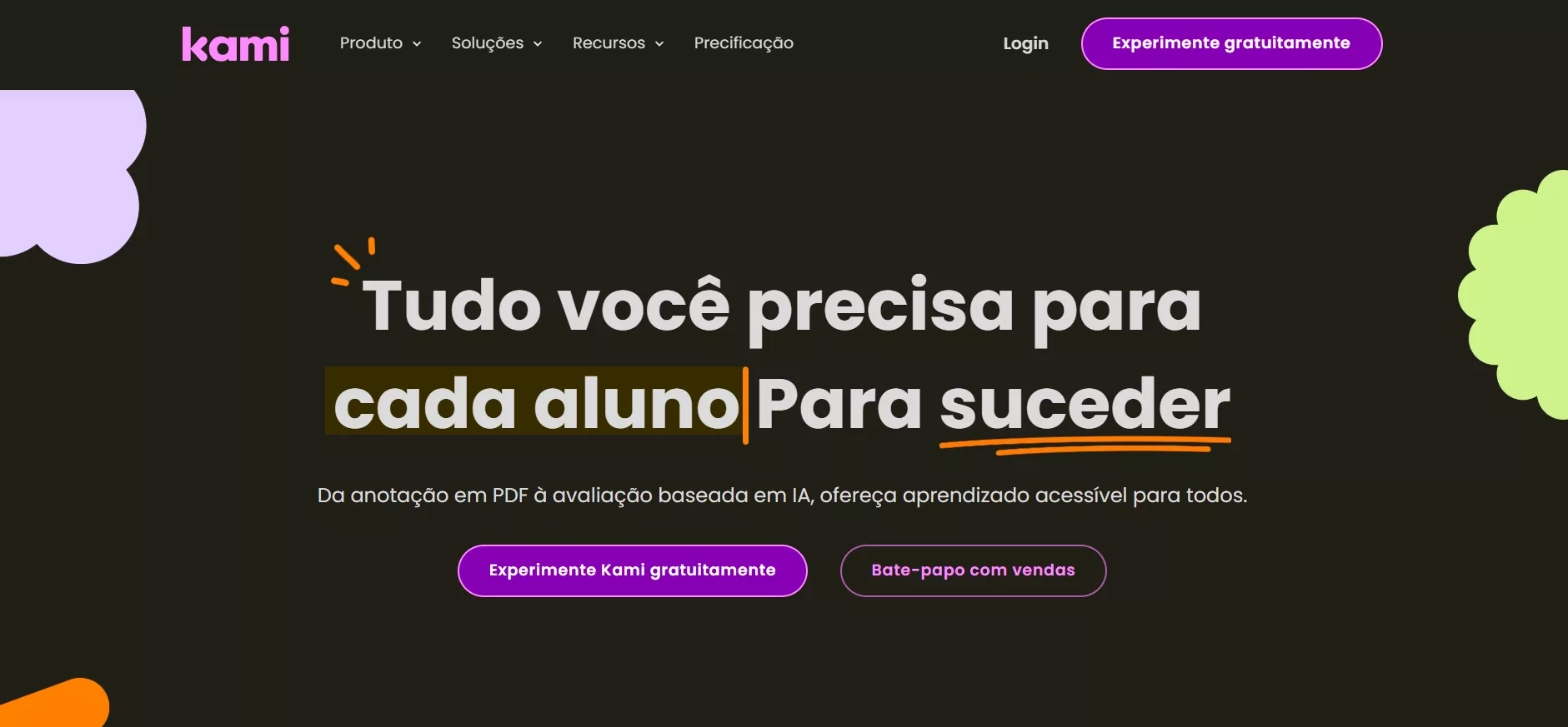 Kami PDF Editor é uma ferramenta de anotação de PDF online. Ele fornece uma plataforma de aprendizado digital colaborativa para professores e alunos anotarem ou compartilharem documentos para colaboração em tempo real. Além disso, também ajuda a criar avaliações de avaliação automática com inteligência artificial. No entanto, ele não oferece a capacidade real de edição de PDF.