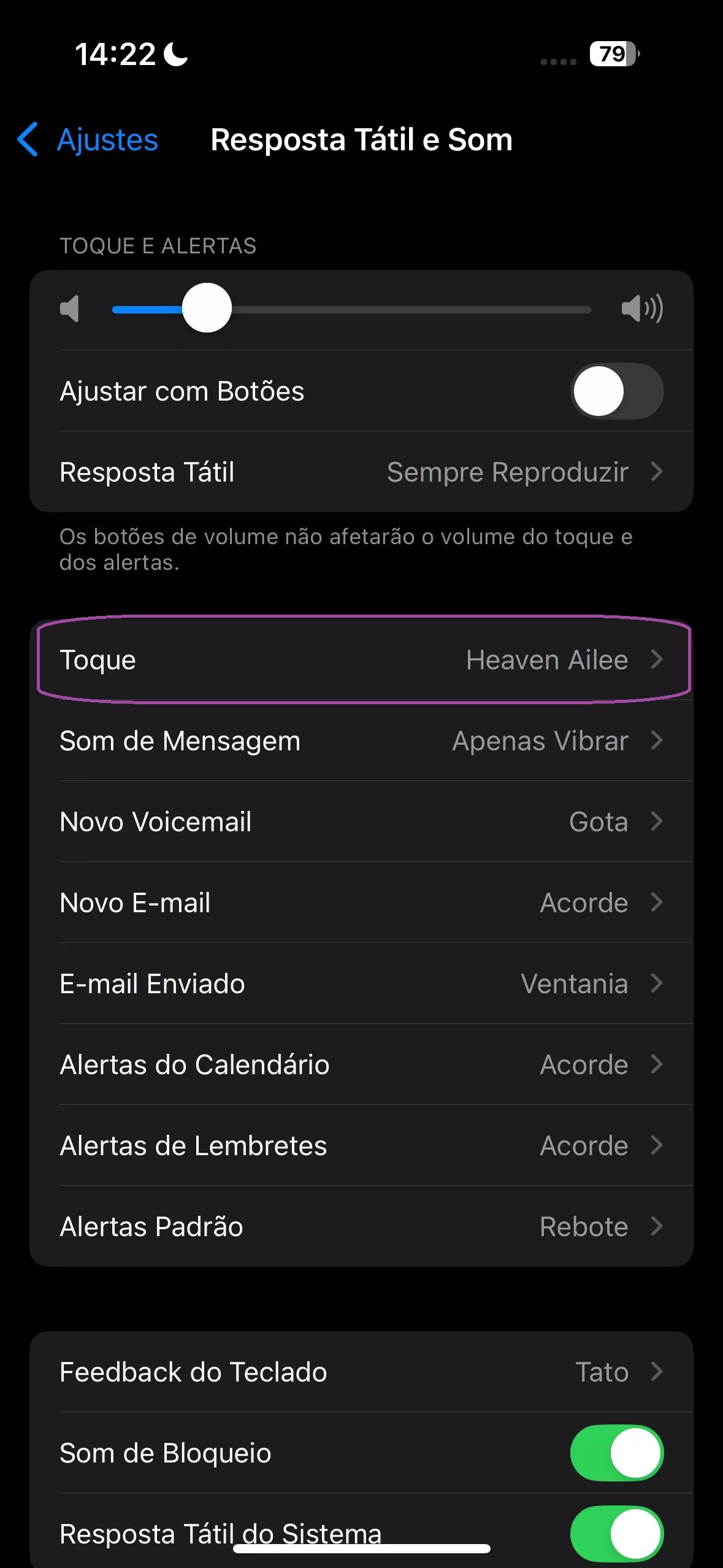 Alternativamente, você pode acessar Configurações > Sons e Tato e aumentar o volume de "Toque de Telefone e Alertas".