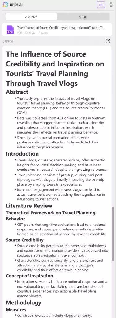 In addition, the source text length for summarizing with UPDF is 100 pages per PDF on the free plan. So let's take a look at how UPDF performs in summarizing the entire paper.