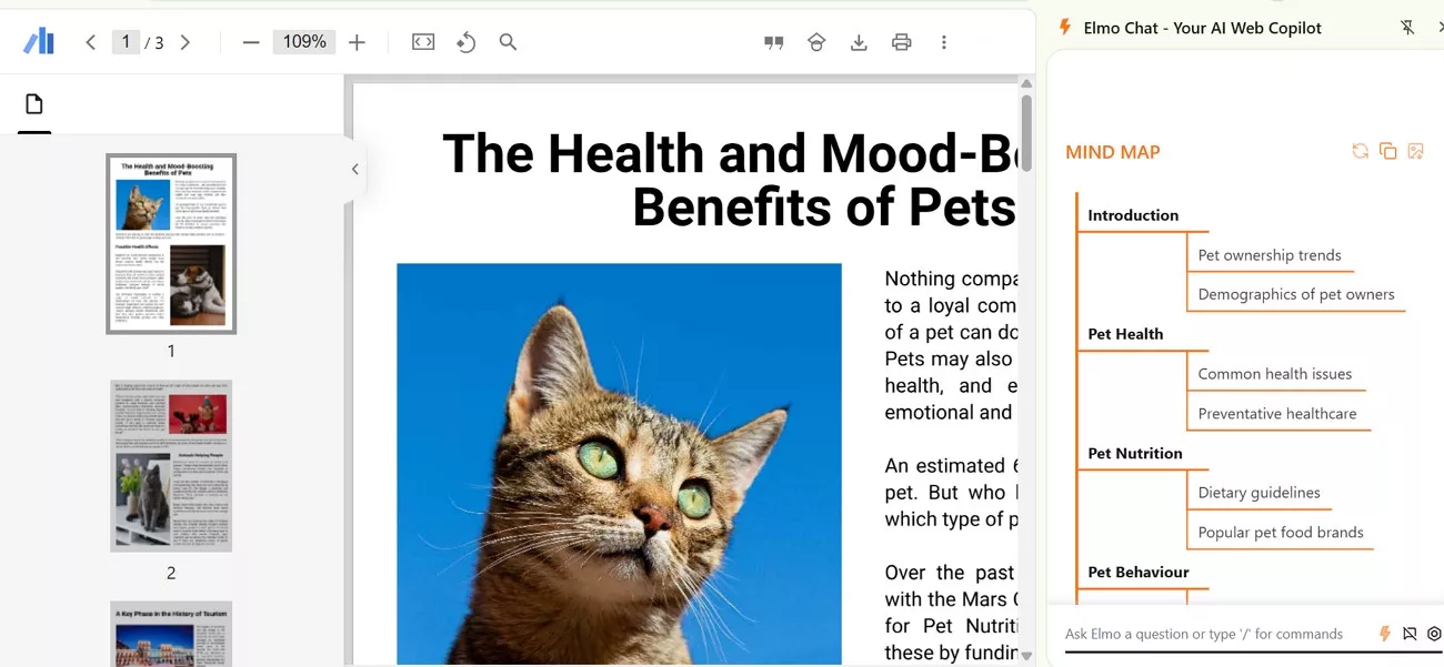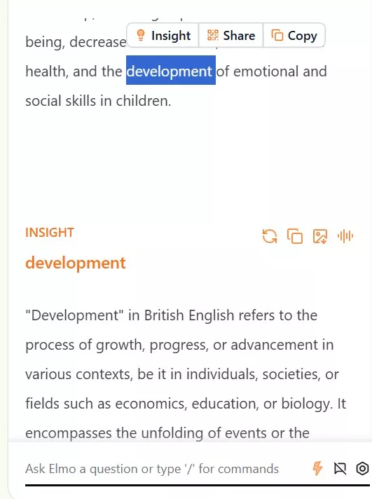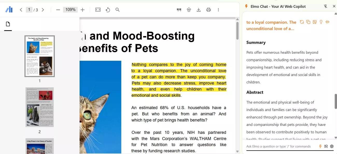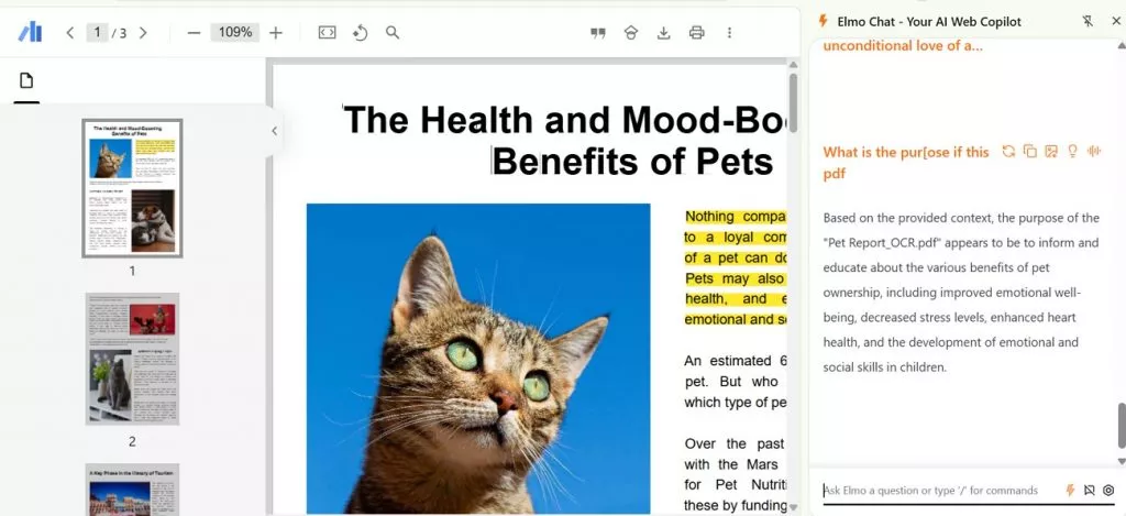 - Even with text-based documents on which OCR is performed, Elmo Chat requires you to copy and paste content from PDFs for summarization, as it cannot process them directly.