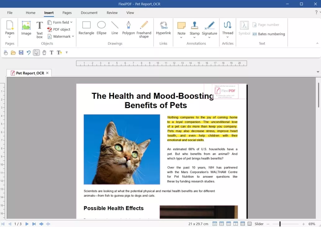 - FlexiPDF allows users to open two versions of the same document for comparison and highlight differences.