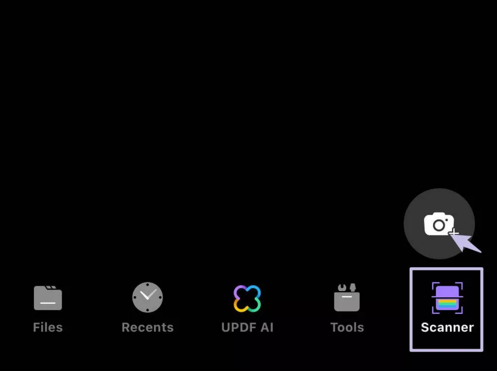 2. Still click on the “Scanner” option in the bottom right corner and tap on the "Camera" icon.