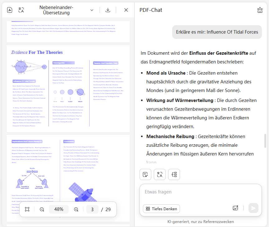 UPDF AI ermöglicht es Ihnen, Ihre PDF auf der einen Seite zu öffnen und zu lesen, während auf der anderen Seite Begriffe erklärt werden. So können Sie schwierige Wörter oder Konzepte sofort verstehen, ohne Ihren Lesefluss zu unterbrechen, was das Lernen oder Überprüfen von Dokumenten schneller und effizienter macht.