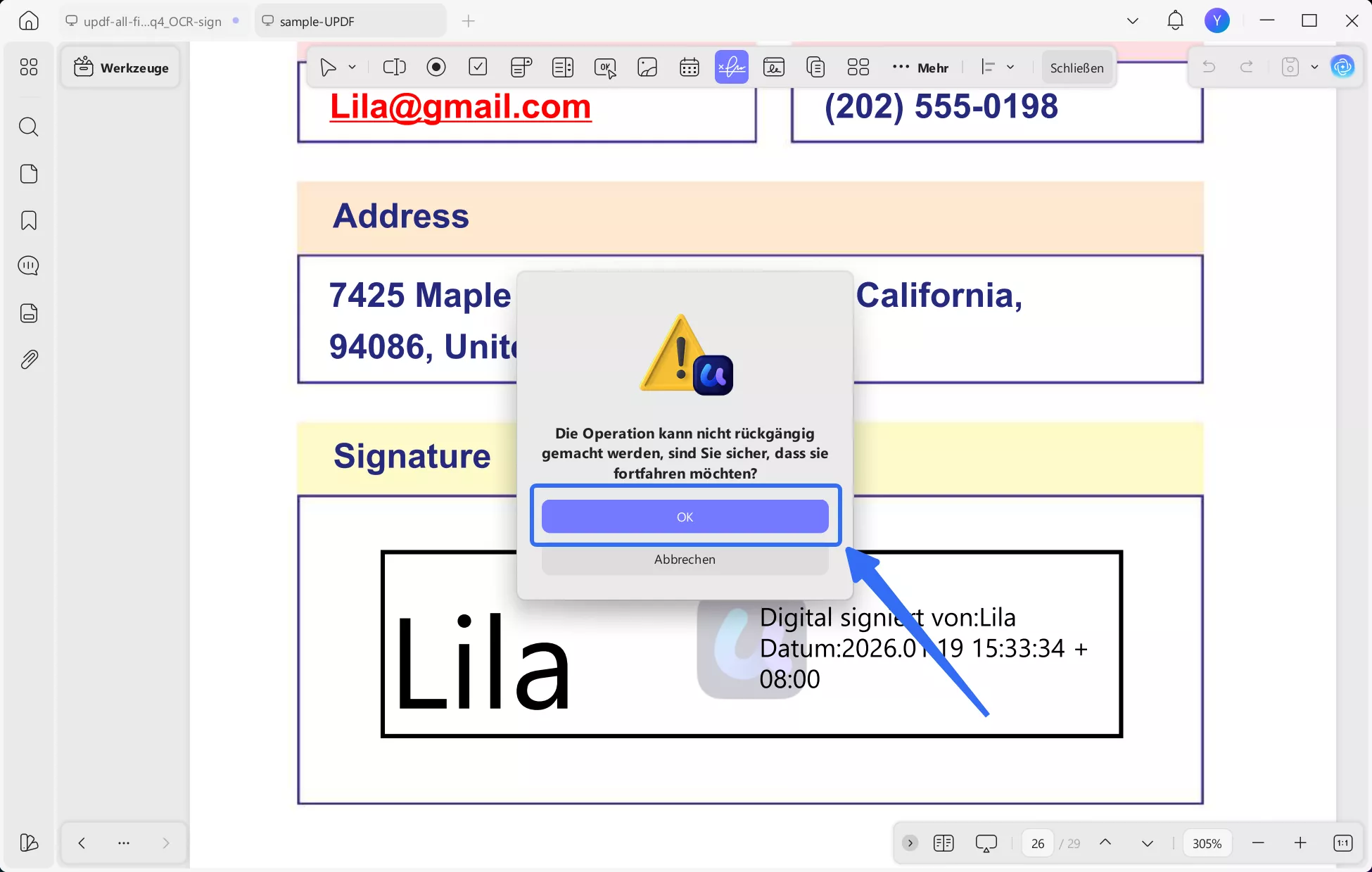 UPDF unterstützt auch das Löschen digitaler Signaturen in PDFs. Um digitale Signaturen zu entfernen, gehen Sie wie folgt vor: