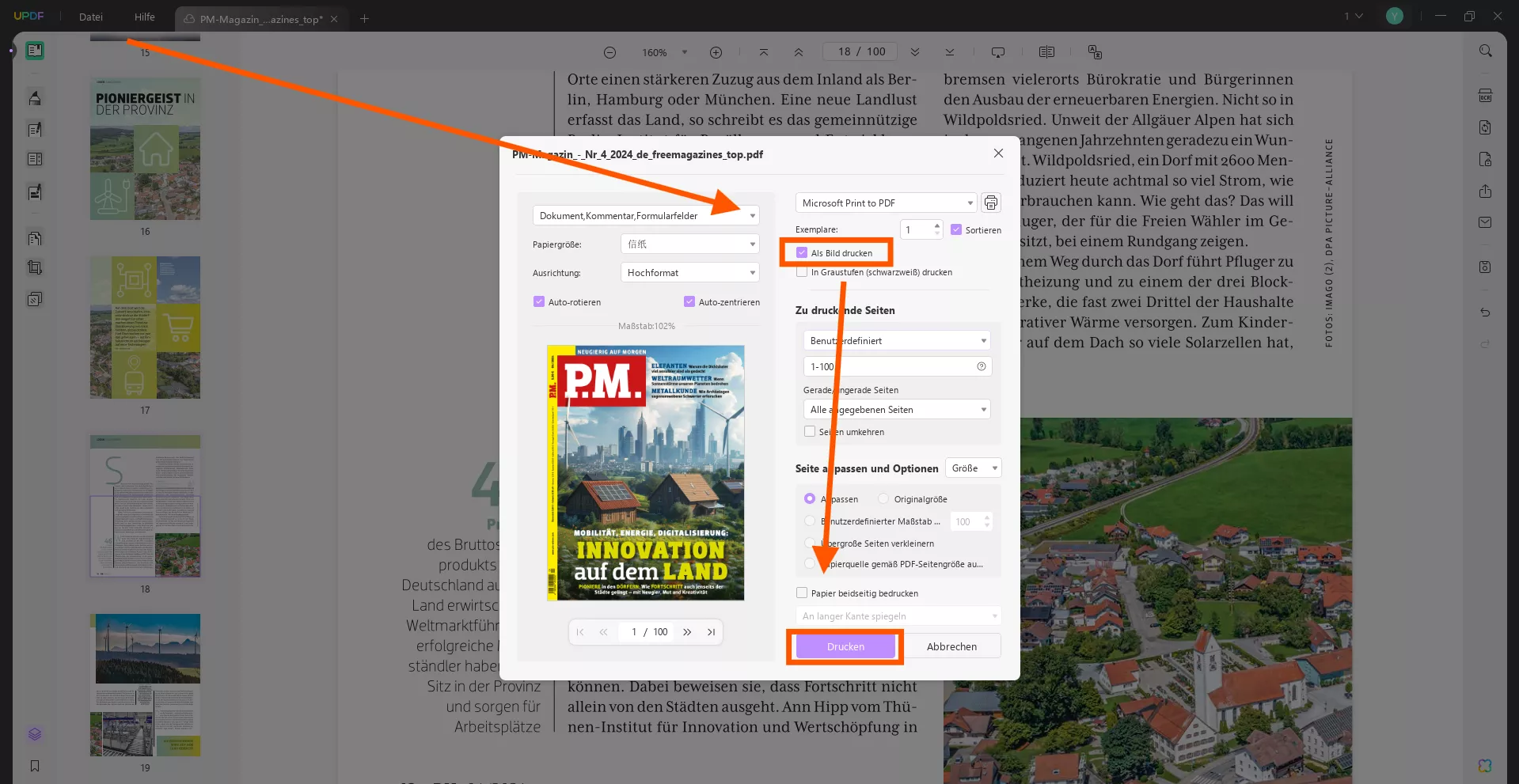 - 3 PDF-Rasterfunktionen: Bild, glätten und drucken.