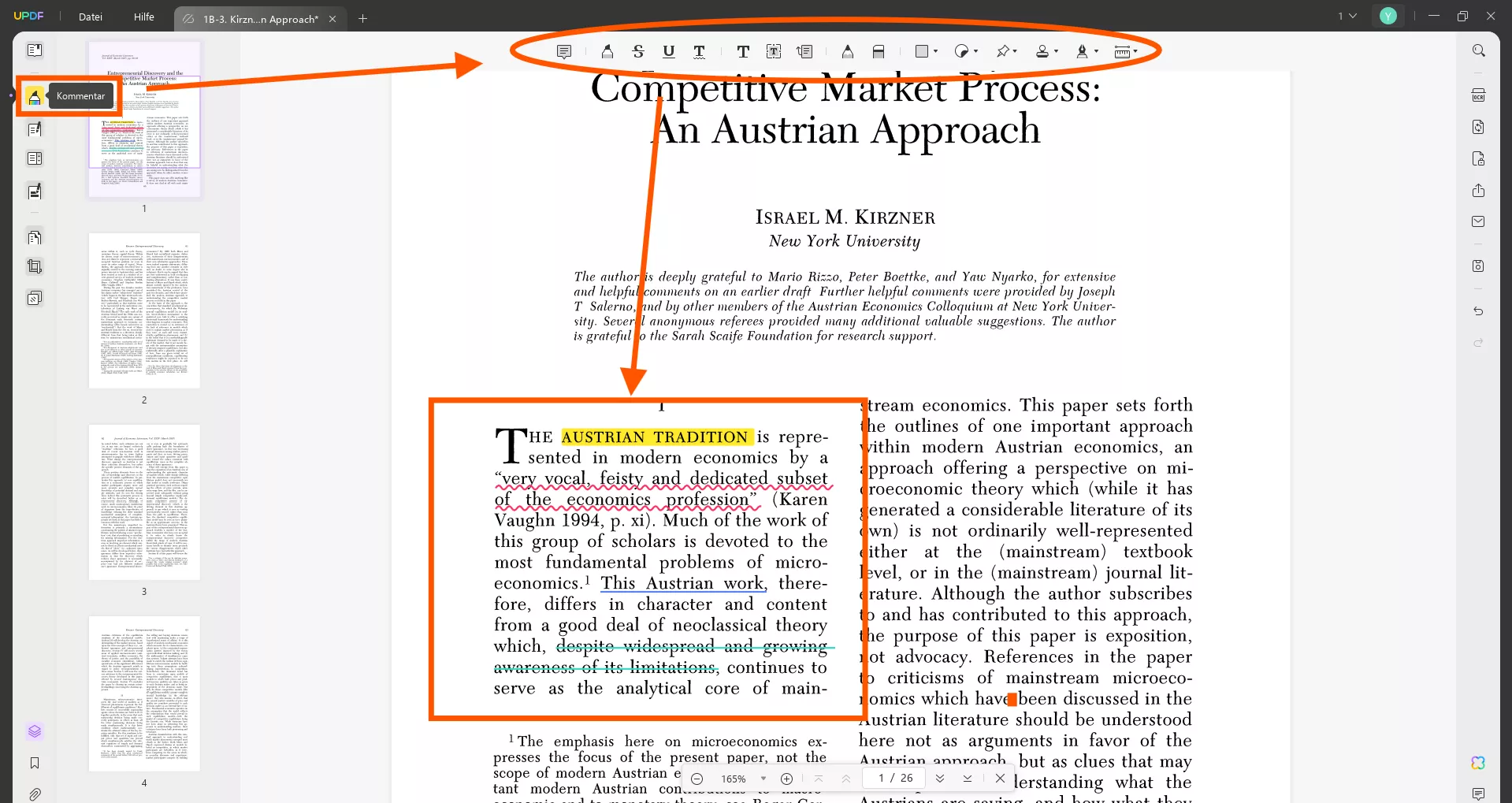 Schritt 2: Wenn Sie das Dokument beschriften möchten, klicken Sie auf „Kommentar“ und wählen Sie eine der verfügbaren Anmerkungsoptionen wie „Hervorheben“, „Durchstreichen“ usw. Sie können auf den Text klicken und den Cursor über den Text ziehen, um ihn hervorzuheben oder durchzustreichen, und auf ähnliche Weise andere Anmerkungswerkzeuge verwenden. Nachdem Sie den Text bearbeitet und beschriftet haben, speichern Sie den Fortschritt mit dem Tastaturkürzel „Strg + S“.