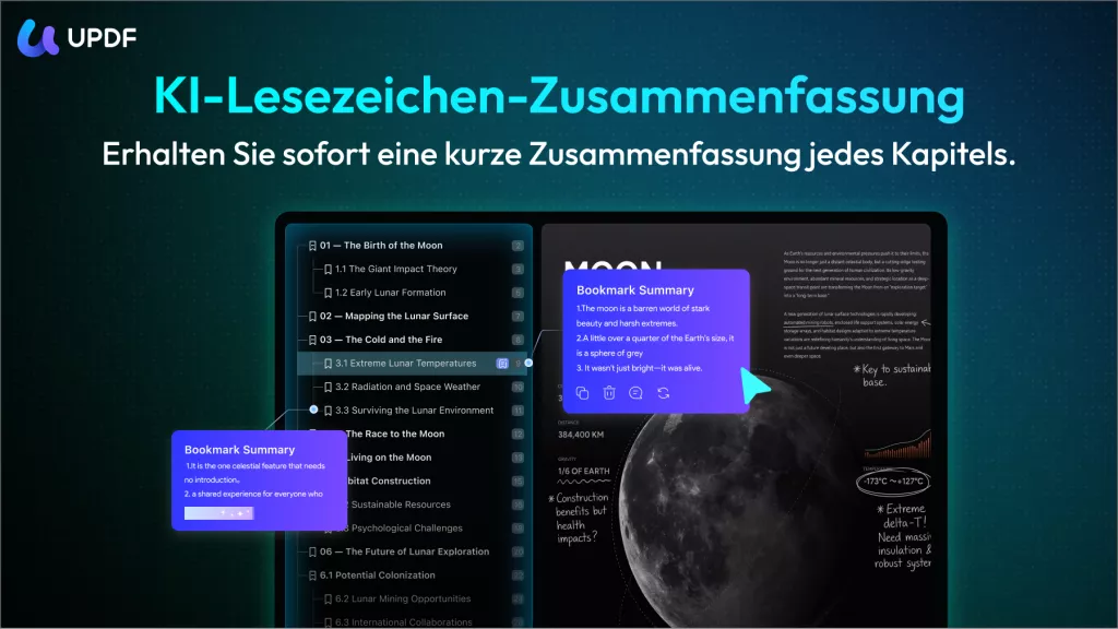 Am besten gefällt uns an UPDF, dass es über AI-Funktionen verfügt, die das gesamte Buch in Sekundenschnelle zusammenfassen, uns schwierige Begriffe erklären und die Originalsprache bei Bedarf in unsere Muttersprache übersetzen.