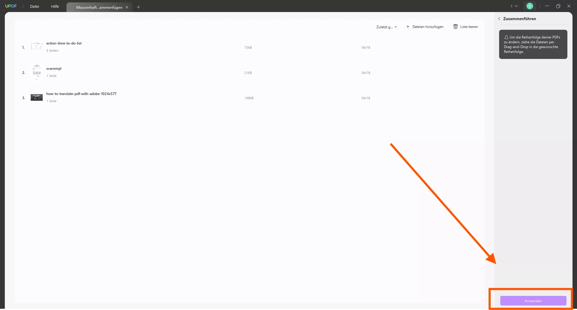 Schritt 5: Klicken Sie unten rechts auf „ Anwenden “, um dieses neue PDF zu speichern.