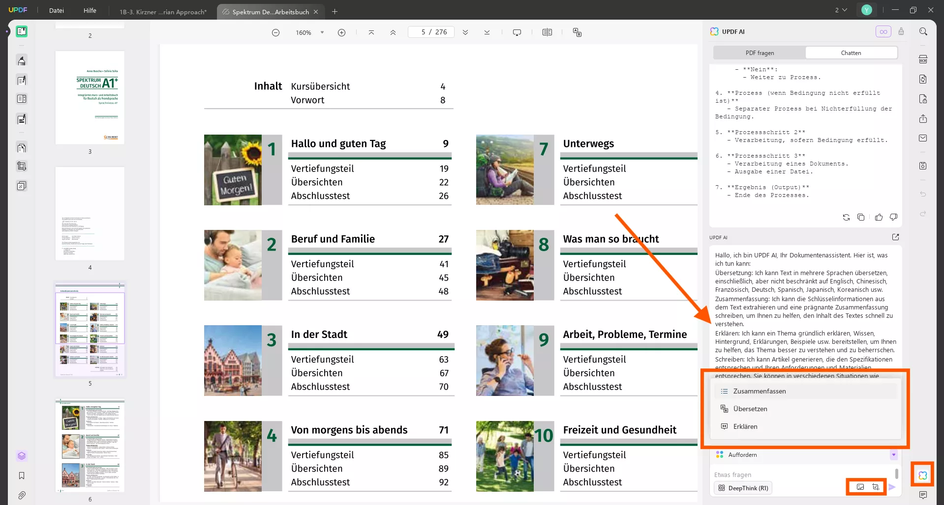 Wenn Sie ein langes PDF-Buch lesen, kann der AI-Assistent in der UPDF-App Sie dabei unterstützen. Wenn Sie das Buch in UPDF öffnen und es in die AI hochladen, erhalten Sie innerhalb von Sekunden eine klare und genaue Zusammenfassung.