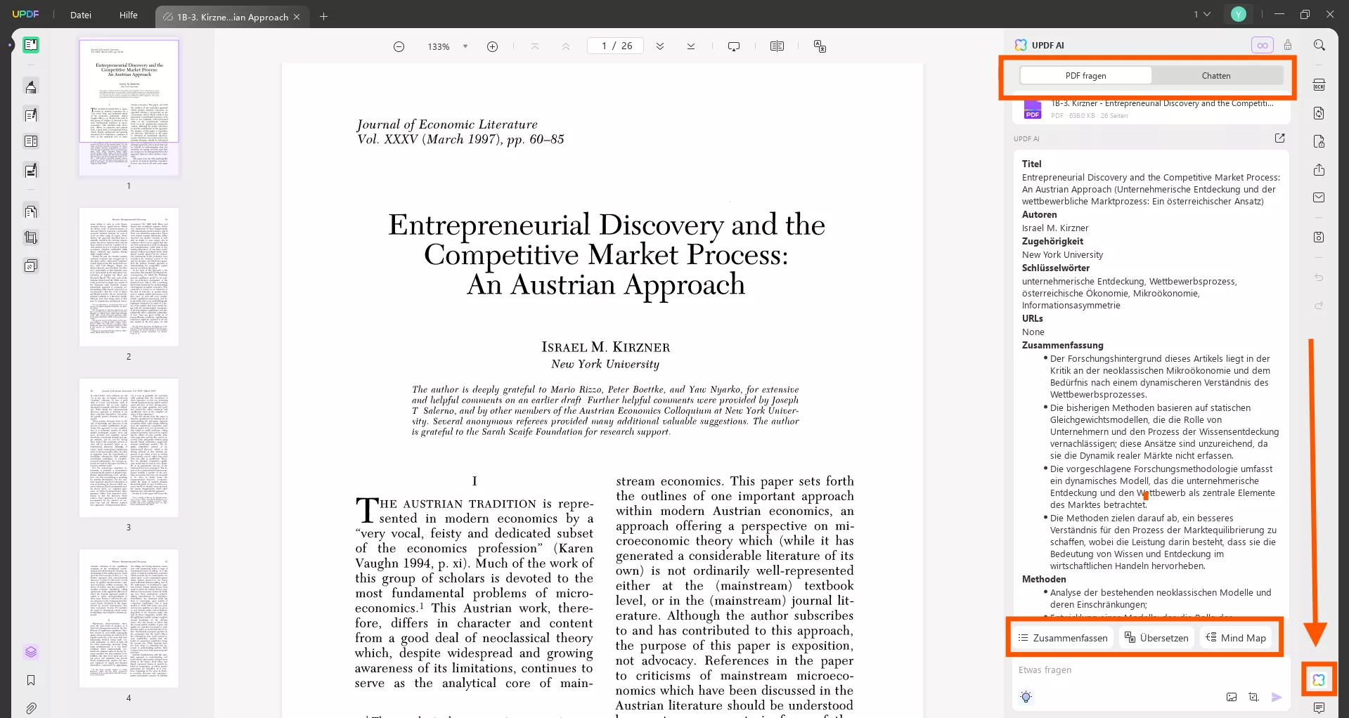 Darüber hinaus verfügt UPDF über diese UPDF-KI-Funktion, die sich perfekt zum Zusammenfassen von Inhalten und zum Übersetzen von Fremdsprachen in Ihre eignet und beim Erstellen einer Mindmap für das Buch hilft, um das Verständnis und Lesen zu verbessern.
