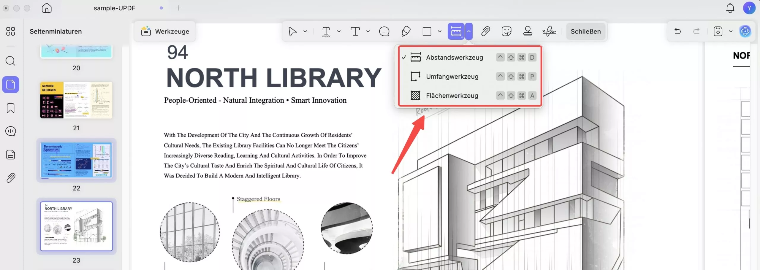 Mit UPDF für Mac können Sie Distanz, Parameter und Fläche in Ihren PDF-Dokumenten messen. Möchten Sie wissen, wie das geht? Folgen Sie einfach den unten aufgeführten Schritten: