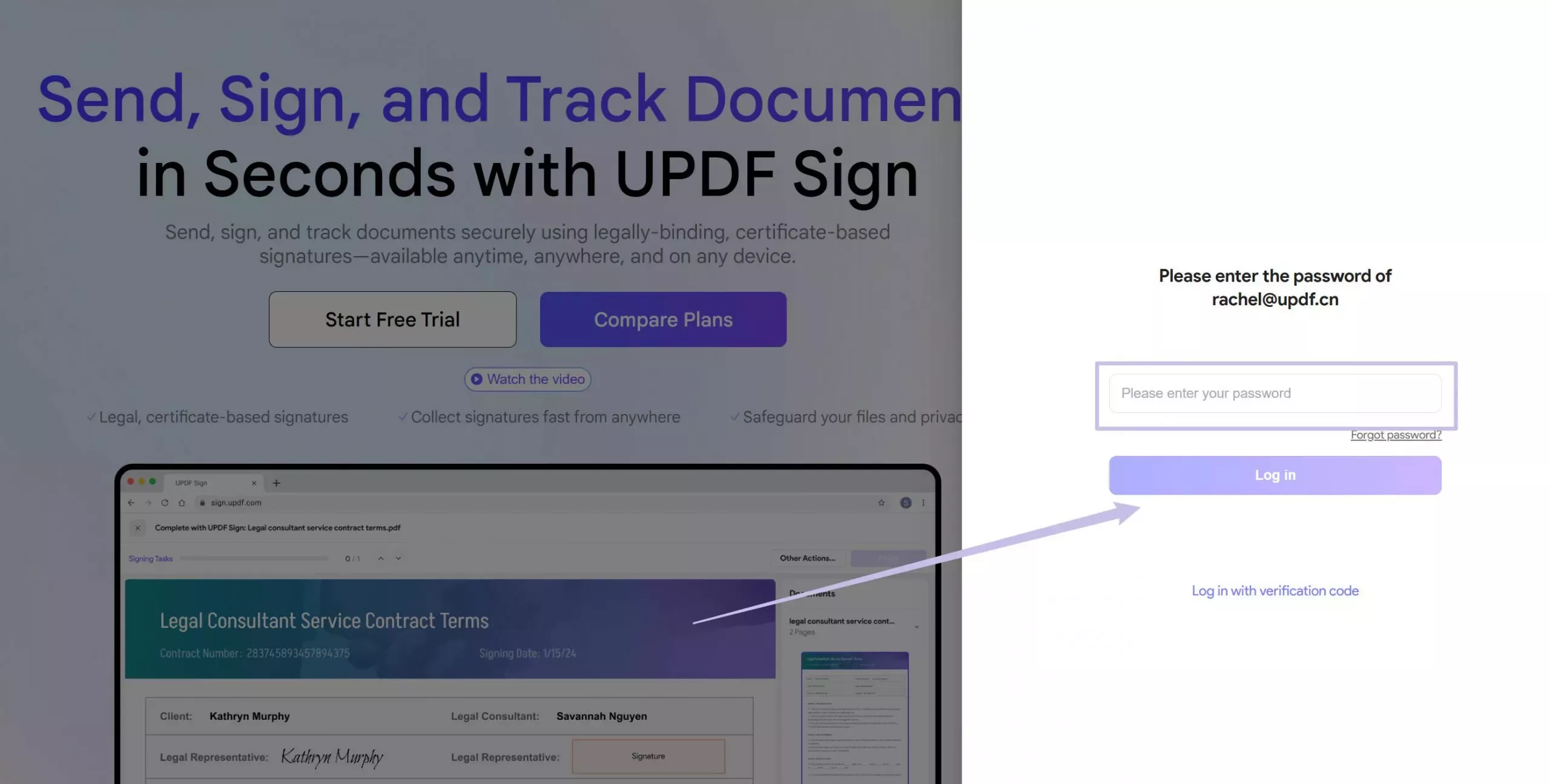 - Geben Sie nun Ihr Konto-Passwort ein und klicken Sie auf die Schaltfläche Login, um Ihr UPDF Sign-Konto zu aktivieren.