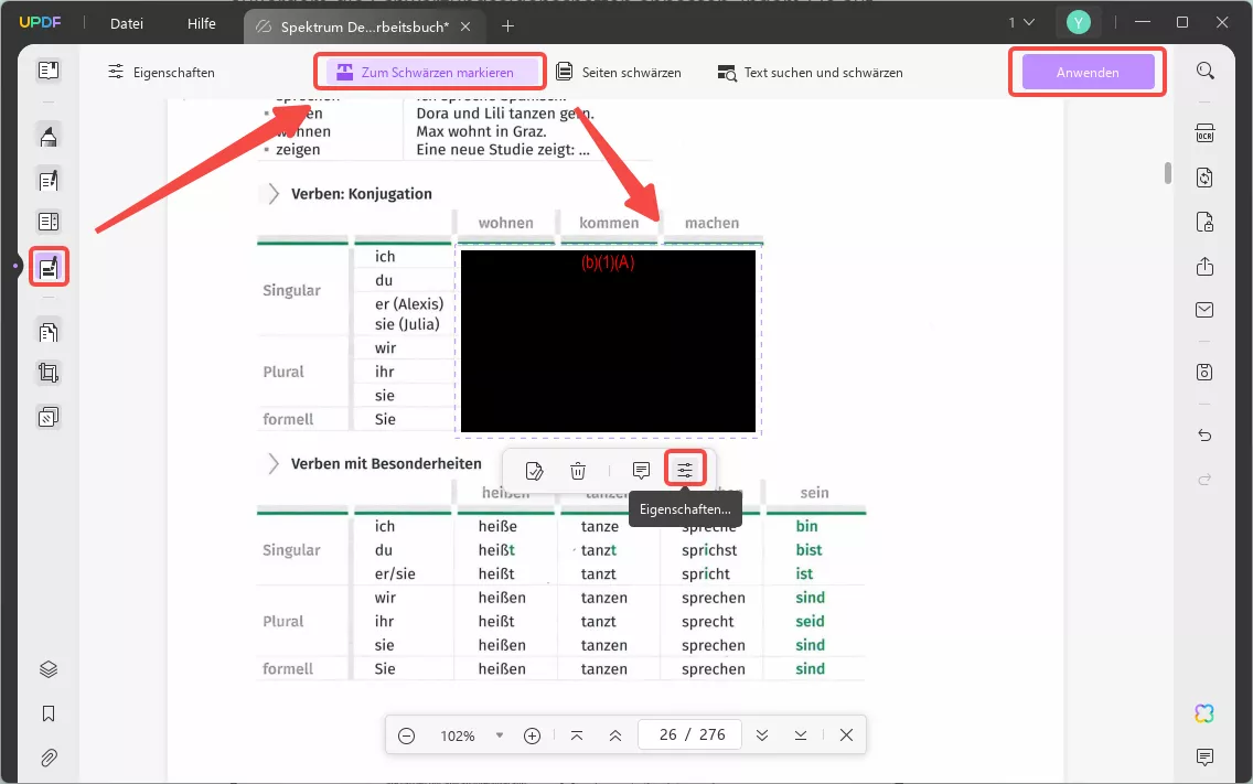 Nachdem Sie nun alle Funktionen dieses PDF-Redaktionstools kennengelernt haben , ist es an der Zeit zu lernen, wie Sie ein Word-Dokument redigieren. Sehen wir uns diese Schritt-für-Schritt-Anleitung zum Redigieren von Text in PDF-Dateien mit UPDF an: