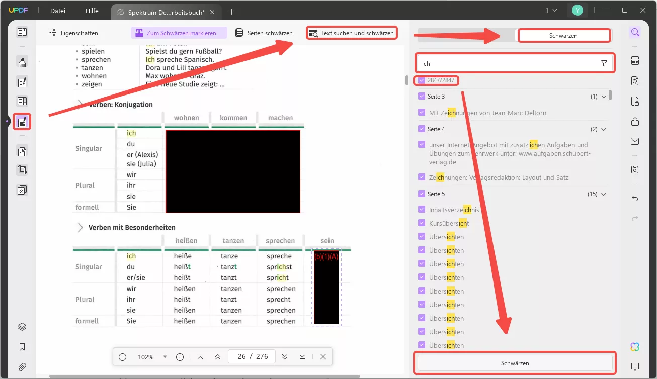Schritt 3: Verwenden Sie die Such- und Schwärzungsfunktion, um bestimmte Wörter zu schwärzen (optional)