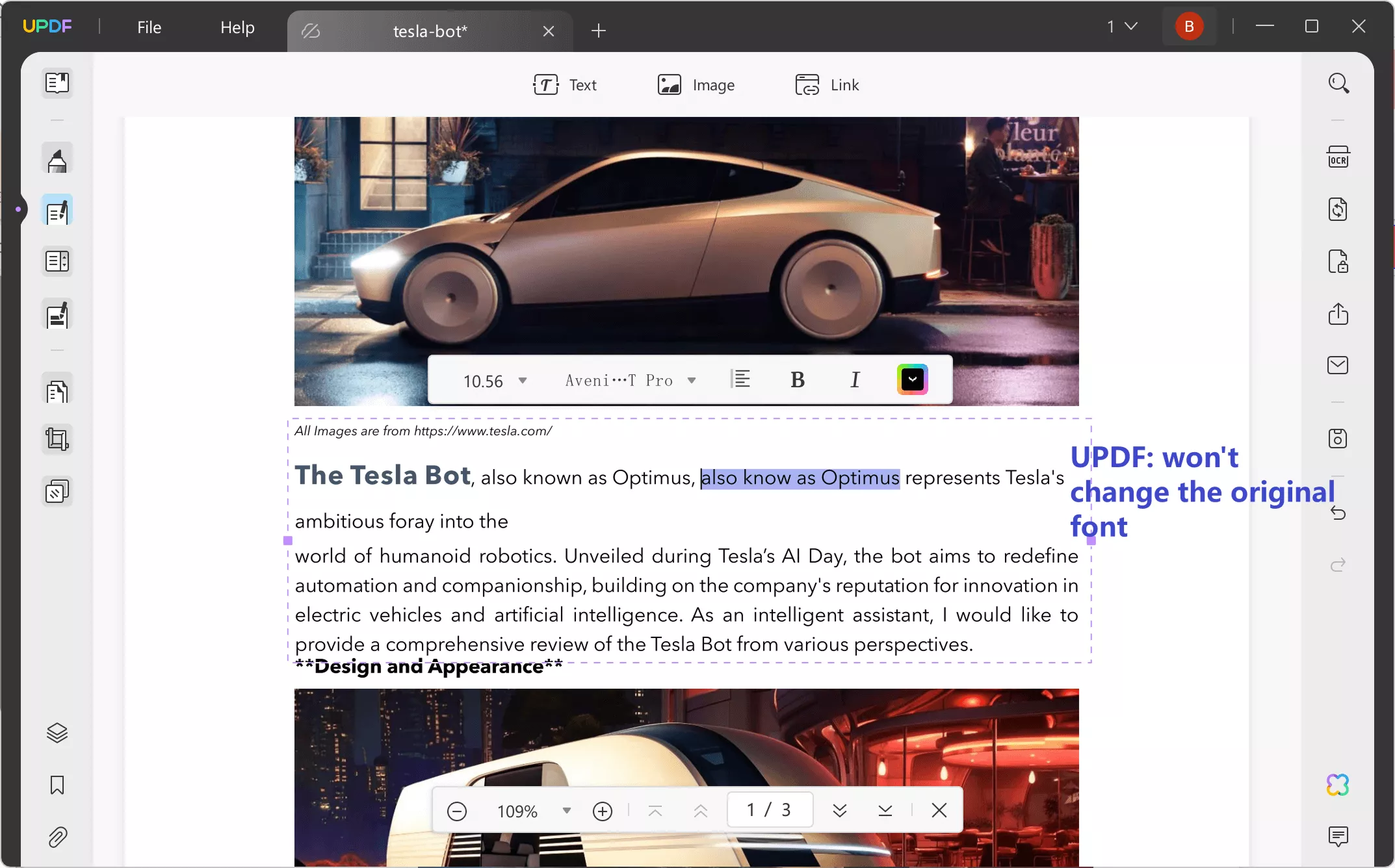 Moreover, it felt that editing features are limited compared to other PDF editors out there. For example, UPDF is another PDF editor, but it also allows editing of images, backgrounds, and more. UPDF won't change the font or font size of the original text. In addition, it offers more annotation features, such as strikethrough, underline, squiggly, and more.