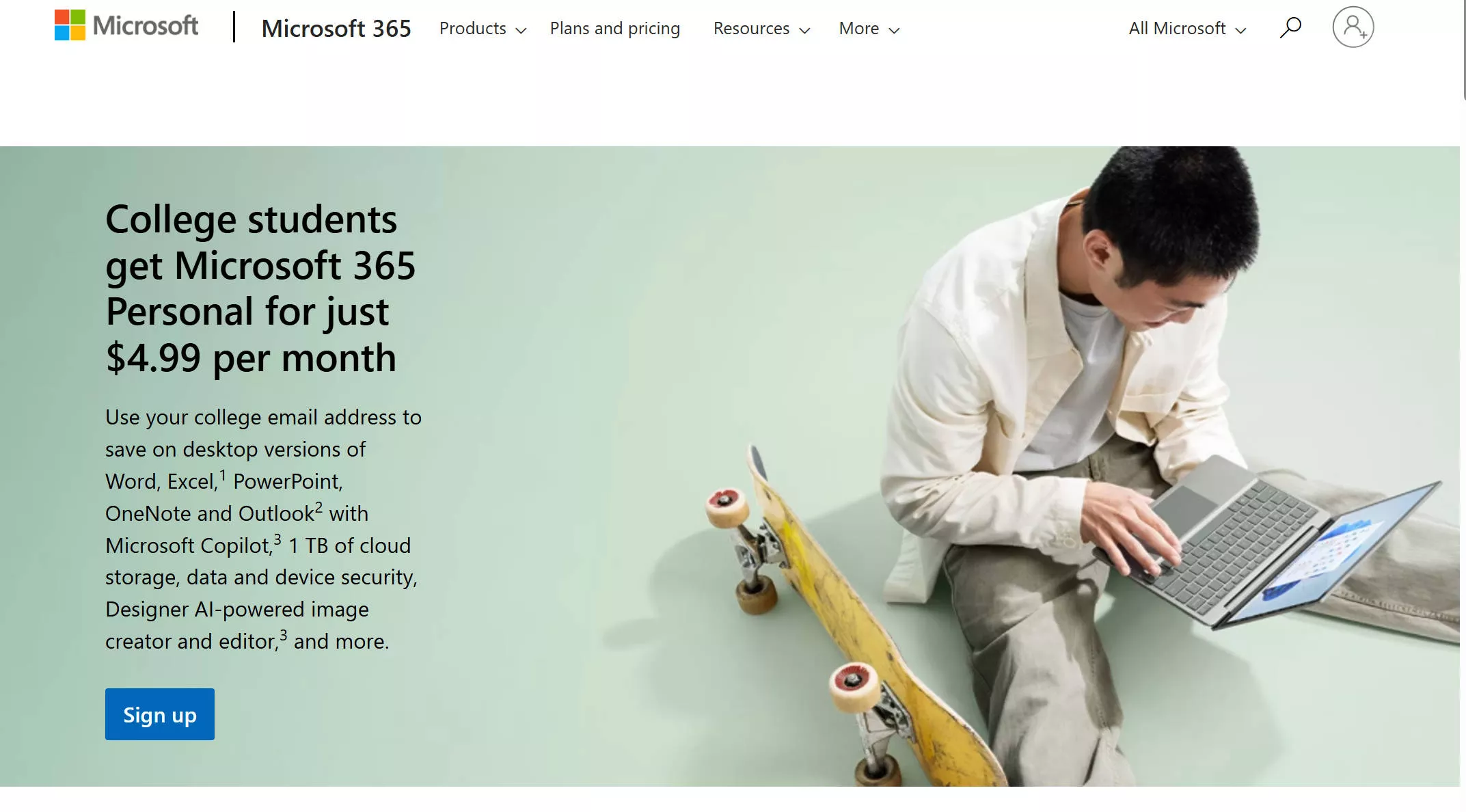 Step 2: Make sure that you log in with your school email in your computer. Go to the Microsoft Store for Education website, click the "Sign Up" button.