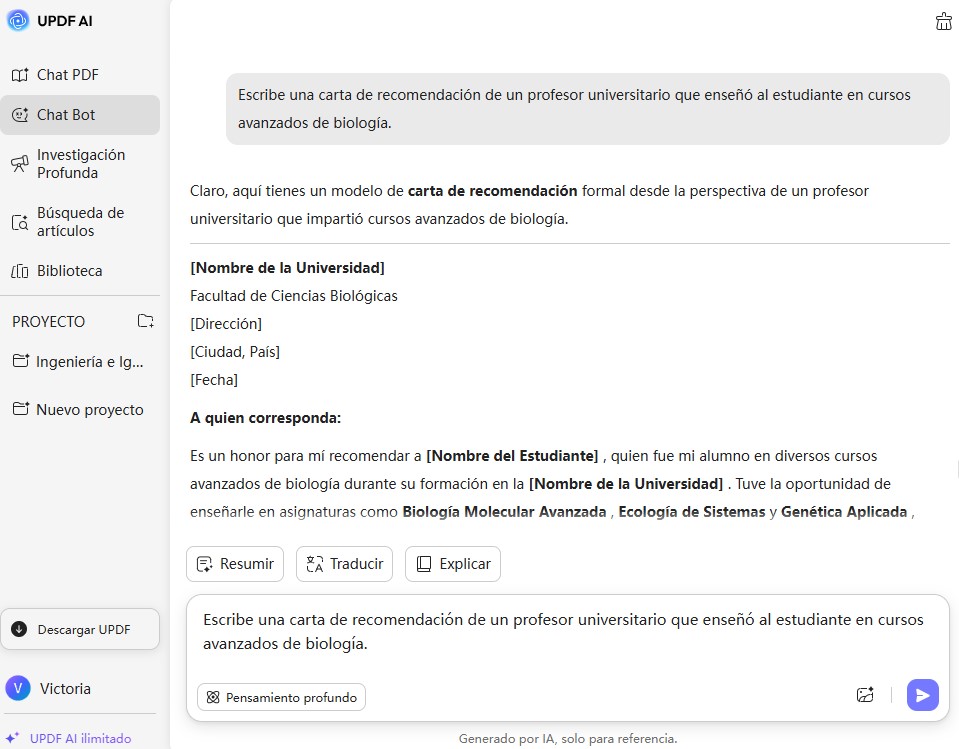 UPDF AI entiende mejor contextos específicos (académico, laboral, becas) y ajusta el tono y los ejemplos en consecuencia, a diferencia de los AIs genéricos que suelen producir borradores estándar para todos.