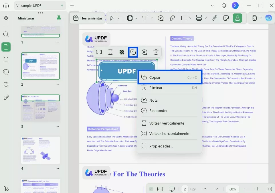 Haga clic en el botón de abajo para descargar UPDF. Inícielo y abra el PDF en UPDF que tiene el sello como archivo de imagen. En las herramientas de la izquierda, seleccione "Editar". Luego, puede hacer clic derecho directamente en la imagen del sello. En las opciones del menú, elija "Copiar".