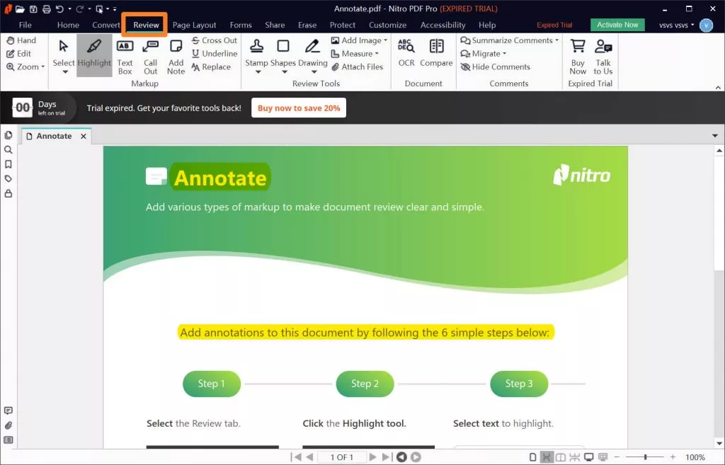 - La versión gratuita añadirá la marca de agua al PDF si desea guardarlo después de anotarlo.