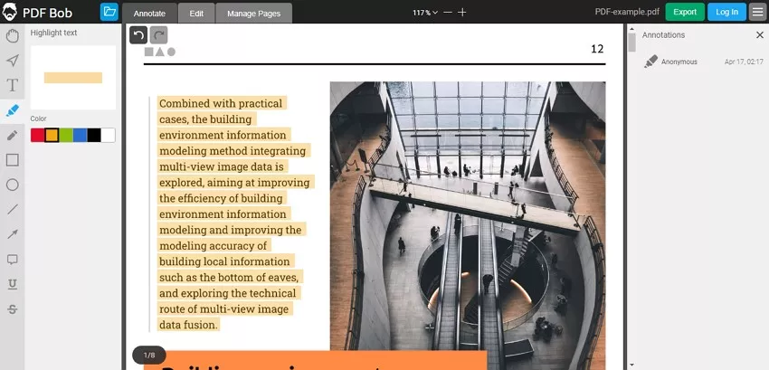 PDF-Xchange Editor es una herramienta de anotación de PDF con todas las funciones. Le ayuda a editar, corregir, añadir o eliminar texto sin esfuerzo. Su versión gratuita le permite utilizar varias funciones, entre las que se incluyen la creación, modificación y resaltado de archivos PDF. Cuenta con una función de seguimiento de cambios que le permite realizar un seguimiento de todos los cambios realizados en un archivo PDF. También puede mover, cambiar el tamaño o eliminar gráficos con esta herramienta de anotación de PDF.