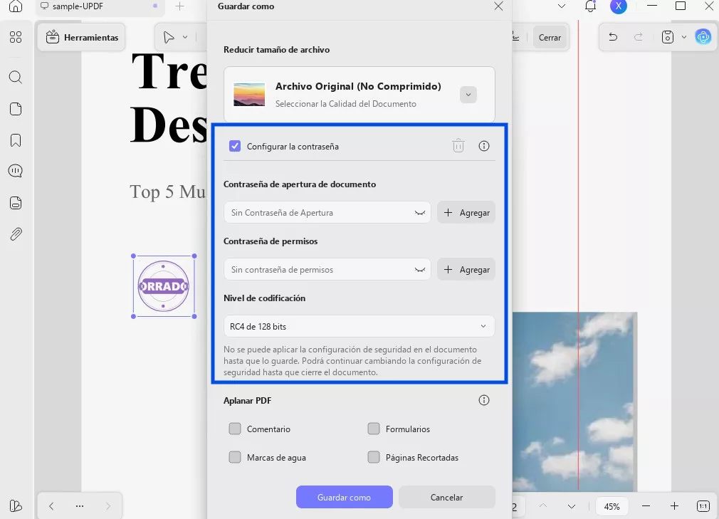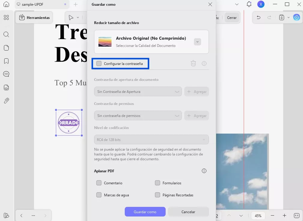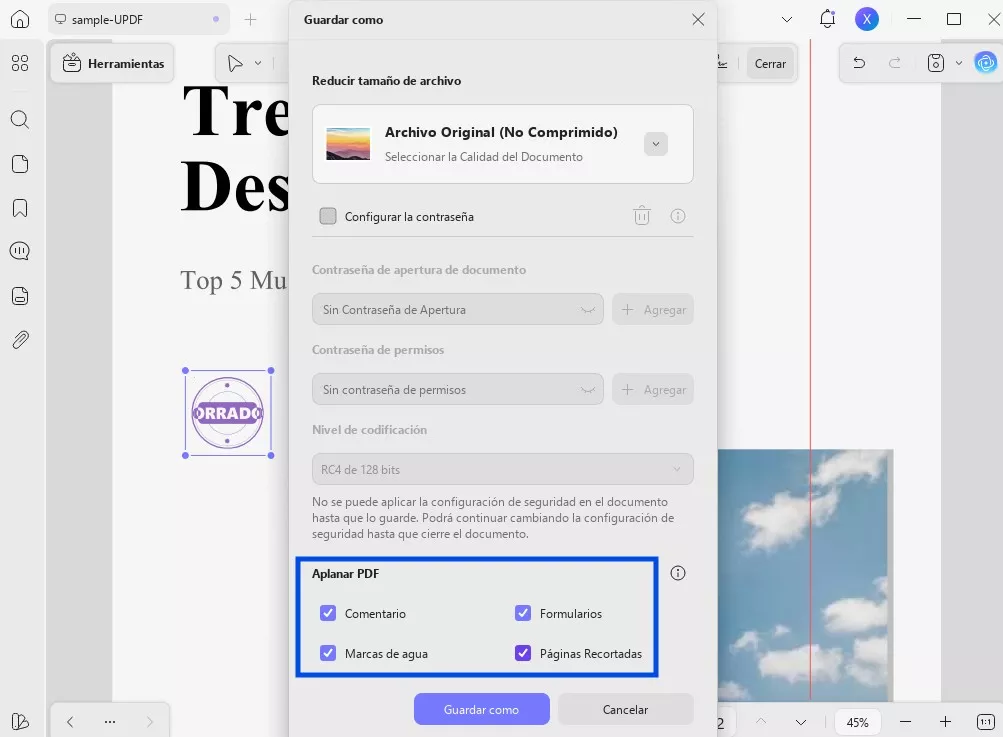Paso 2: Aplanar el documento PDF sellado