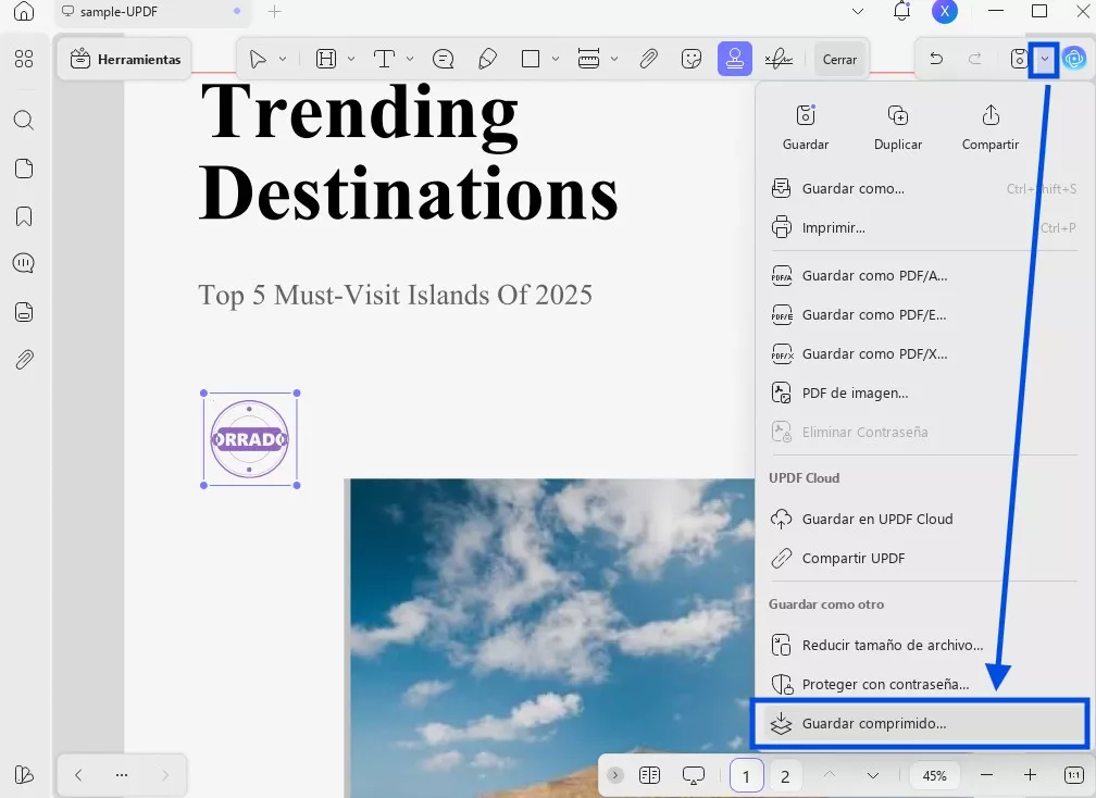 A continuación, guarda el documento PDF desbloqueado en tu ordenador y sigue las mismas instrucciones indicadas en la Parte 1 para eliminar el sello que ya no necesitas en tu archivo.