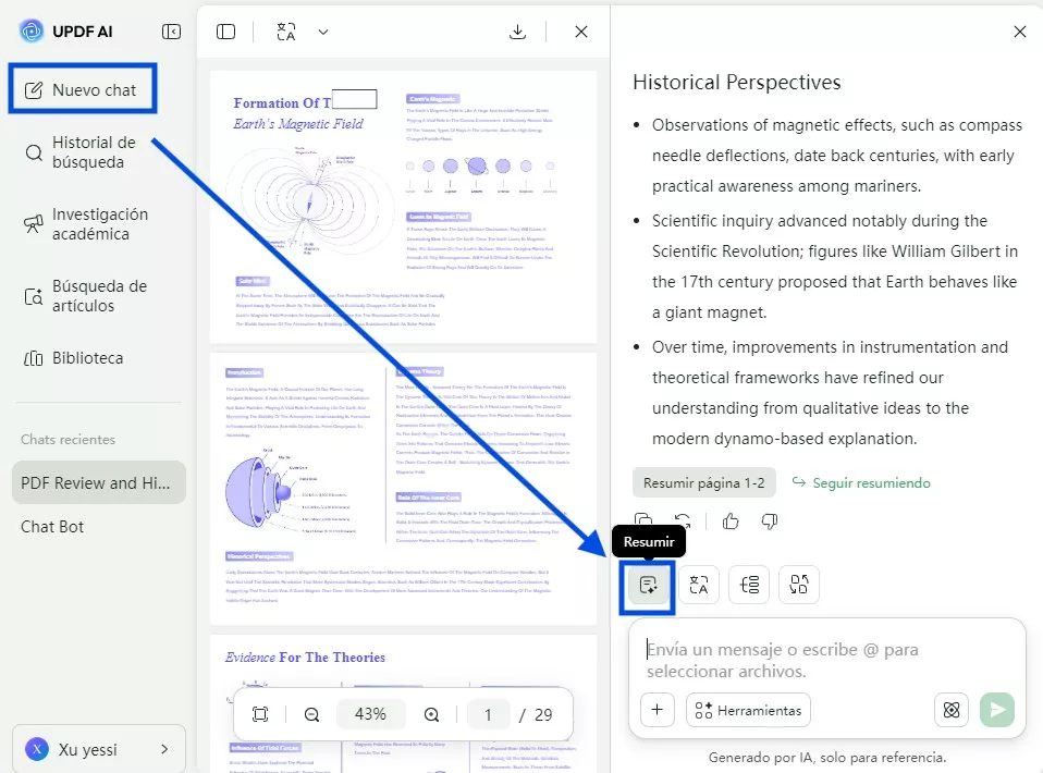 Si eres de los que trabajan con archivos PDF a diario, ¡tenemos algo para ti! Te presentamos UPDF AI. Es una de las herramientas más fiables y fáciles de usar para estudiar archivos PDF. Aquí puedes subir tus archivos PDF, hacer preguntas y resumir el contenido. Además, puedes utilizarlo para traducir el contenido de los PDF. ¿No es increíble? Solo tienes que hacer clic en el botón de abajo para visitar UPDF AI Online y utilizarlo para mejorar tu eficiencia en el estudio.