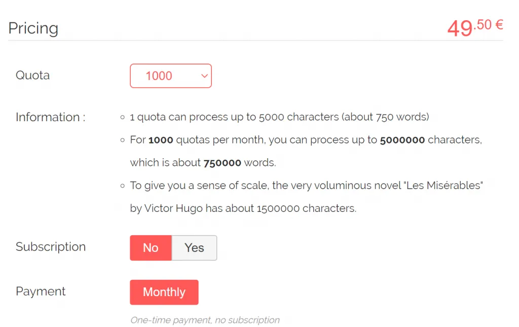 | Precios | 9,9€/ 200 de cuota (5000 caracteres o unas 750 palabras) | 79,00€/Año 29,00€/Trimestral |