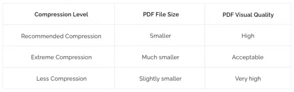 Después de subir o importar tu documento, te pedirá que elijas el nivel de compresión. iLovePDF admite tres niveles de compresión: Extrema, Recomendada y Menor compresión. Tú decides qué clase quieres usar para la compresión.