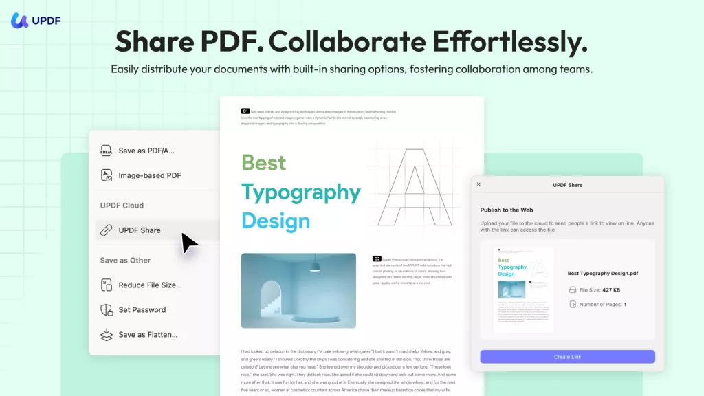 Si no es necesario reducir el tamaño de su PDF, o si desea mantener la máxima calidad de su archivo, compartirlo a través de un enlace es una alternativa perfecta. UPDF hace que este proceso sea increíblemente fácil con su función de compartir enlaces, lo que le permite compartir su documento PDF sin restricciones de tamaño ni pérdida de calidad. Esta función garantiza que cualquier persona a la que envíe el enlace pueda acceder al PDF al instante. ¿Listo para explorar esta opción? Descargue UPDF y comience hoy mismo.