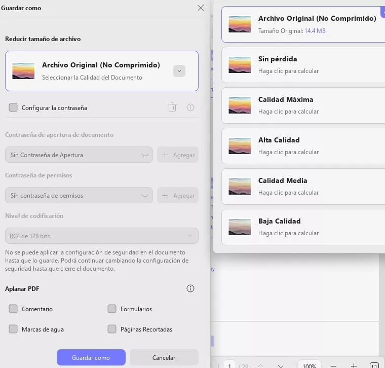Paso 4. Después de ajustar la configuración, haga clic en «Guardar» para generar el nuevo archivo PDF, ligeramente más pequeño. Asegúrese de anotar el tamaño del archivo antes y después de la impresión para compararlos.